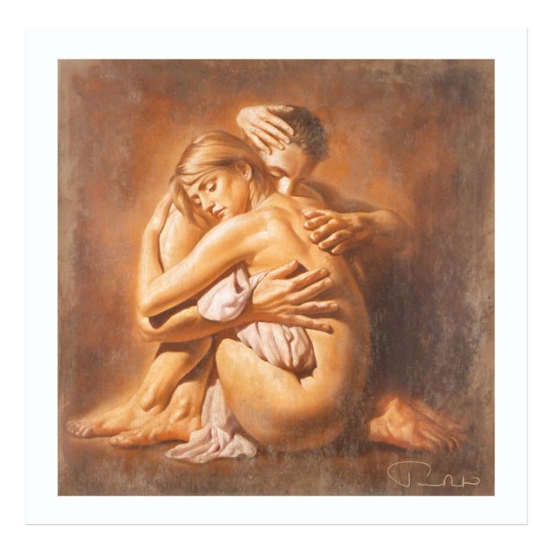With a style that is reminiscent of the frescoes of Michelangelo and Caravaggio, Tomasz Rut creates breathtaking works of art that capture the beauty of the human form. "Remisse" is a limited edition giclee on canvas, numbered and hand signed by Rut. Includes Certificate of Authenticity! Measure approx. 28" x 28" (image).