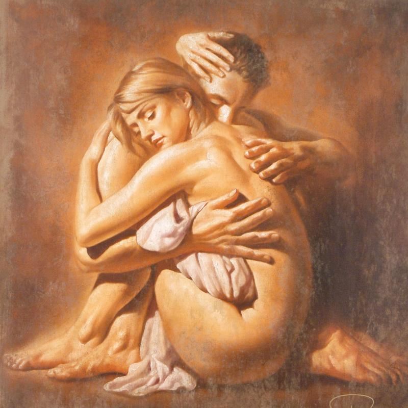 With a style that is reminiscent of the frescoes of Michelangelo and Caravaggio, Tomasz Rut creates breathtaking works of art that capture the beauty of the human form. "Remisse" is a limited edition giclee on canvas, numbered and hand signed by Rut. Includes Certificate of Authenticity! Measure approx. 28" x 28" (image).