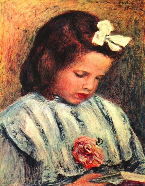 Artist: Pierre-Auguste Renoir 1841-1919 - Title: A Reading Girl - Medium: Fine Art Reproduction Giclee on Canvas - Image Size: Approximately 20 inches x 15.5 inches - Unframed on Unstretched Canvas - Biography: An innovative artist, Pierre-Auguste Reno