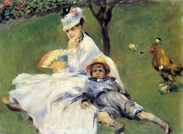 Artist: Pierre-Auguste Renoir 1841-1919 - Title: Camille Monet And Her Son Jean In The Garden Of Argenteuil - Medium: Fine Art Reproduction Giclee on Canvas - Image Size: Approximately 14.5 inches x 20 inches - Unframed on Unstretched Canvas - Biography