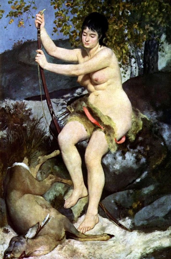 Artist: Pierre-Auguste Renoir 1841-1919 - Title: Diana As Hunter - Medium: Fine Art Reproduction Giclee on Canvas - Image Size: Approximately 20 inches x 13 inches - Unframed on Unstretched Canvas - Biography: An innovative artist, Pierre-Auguste Renoir was born on February 25, 1841, in Limoges, France. He started out as an apprentice to a porcelain painter and studied drawing in his free time. After years as a struggling painter, Renoir helped launch an artistic movement called Impressionism in 1870s. He eventually became one of the most highly regarded artists of his time. He died in Cagnes-sur-Mer, France, in 1919. -