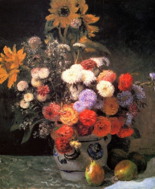 Artist: Pierre-Auguste Renoir 1841-1919 - Title: Flowers In A Vase - Medium: Fine Art Reproduction Giclee on Canvas - Image Size: Approximately 20 inches x 16.25 inches - Unframed on Unstretched Canvas - Biography: An innovative artist, Pierre-Auguste