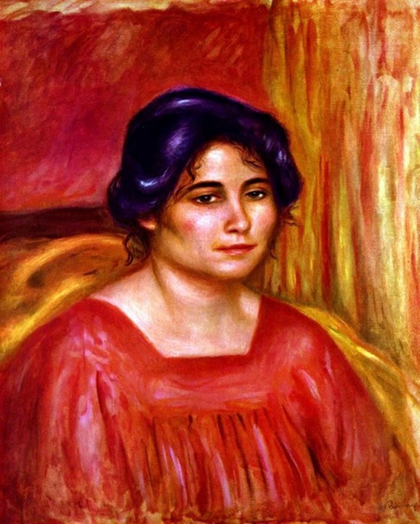 Artist: Pierre-Auguste Renoir 1841-1919 - Title: Gabrielle With Red Blouse - Medium: Fine Art Reproduction Giclee on Canvas - Image Size: Approximately 20 inches x 16 inches - Unframed on Unstretched Canvas - Biography: An innovative artist, Pierre-Au