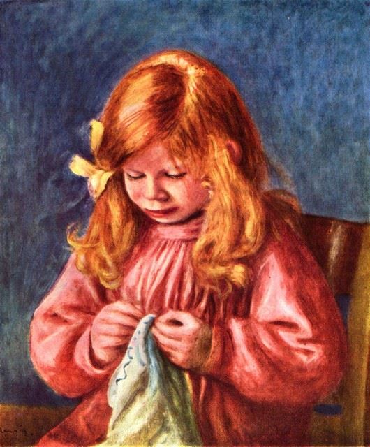 Artist: Pierre-Auguste Renoir 1841-1919 - Title: Jean Renoir Sewing - Medium: Fine Art Reproduction Giclee on Canvas - Image Size: Approximately 20 inches x 16.5 inches - Unframed on Unstretched Canvas - Biography: An innovative artist, Pierre-Auguste