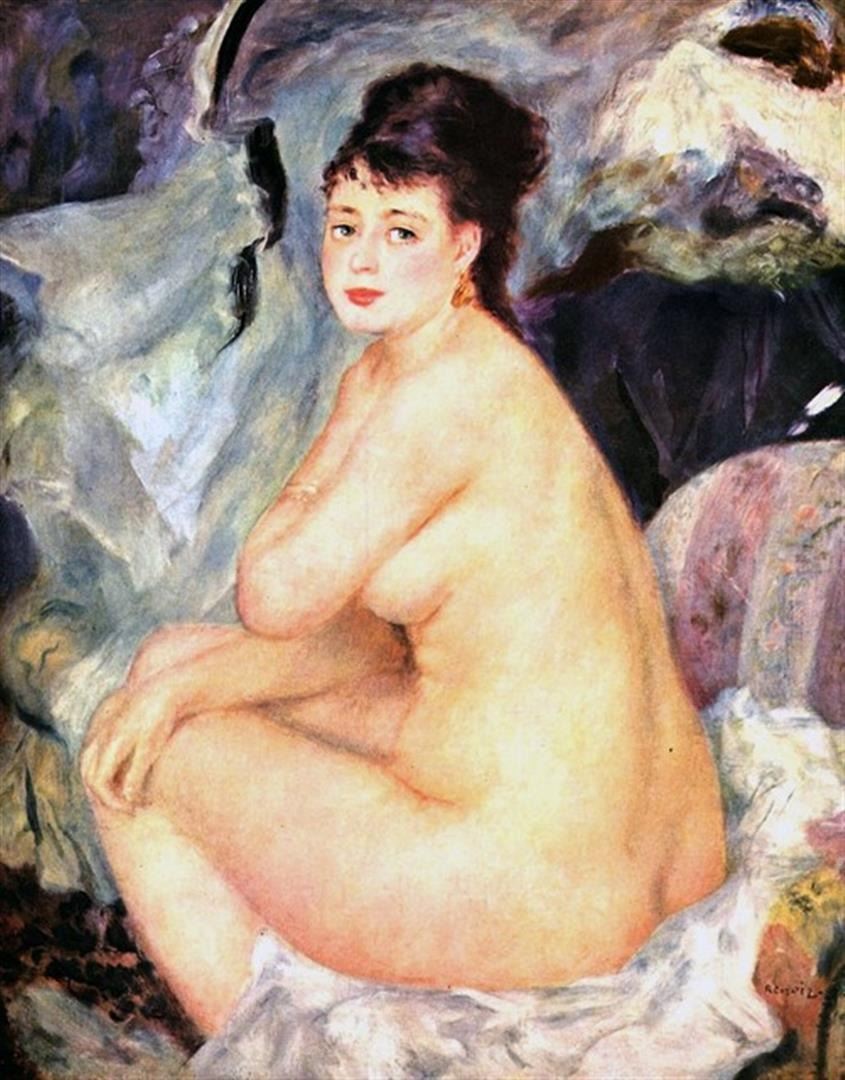 Artist: Pierre-Auguste Renoir 1841-1919 - Title: Nude Female Anna - Medium: Fine Art Reproduction Giclee on Canvas - Image Size: Approximately 20 inches x 15.5 inches - Unframed on Unstretched Canvas - Biography: An innovative artist, Pierre-Auguste