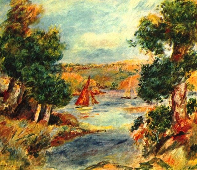 Artist: Pierre-Auguste Renoir 1841-1919 - Title: Sailing Boats In Cagnes - Medium: Fine Art Reproduction Giclee on Canvas - Image Size: Approximately 17.25 inches x 20 inches - Unframed on Unstretched Canvas - Biography: An innovative artist, Pierre-A