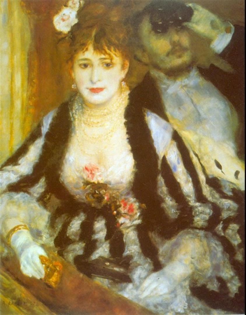 Artist: Pierre-Auguste Renoir 1841-1919 - Title: Theatre Box - Medium: Fine Art Reproduction Giclee on Canvas - Image Size: Approximately 20 inches x 15.5 inches - Unframed on Unstretched Canvas - Biography: An innovative artist, Pierre-Auguste Renoir was born on February 25, 1841, in Limoges, France. He started out as an apprentice to a porcelain painter and studied drawing in his free time. After years as a struggling painter, Renoir helped launch an artistic movement called Impressionism in 1870s. He eventually became one of the most highly regarded artists of his time. He died in Cagnes-sur-Mer, France, in 1919. -