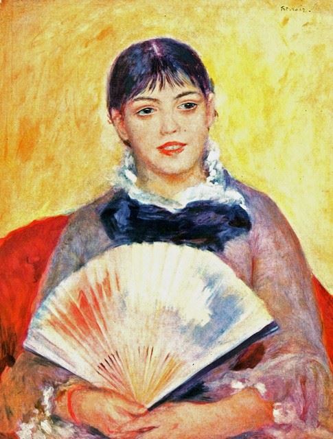 Artist: Pierre-Auguste Renoir 1841-1919 - Title: Woman With Fan - Medium: Fine Art Reproduction Giclee on Canvas - Image Size: Approximately 20 inches x 15 inches - Unframed on Unstretched Canvas - Biography: An innovative artist, Pierre-Auguste Renoi
