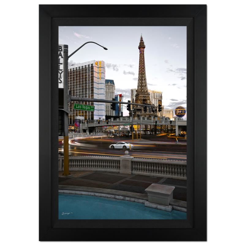 "Retro Las Vegas" is a limited edition giclee on canvas by photographer Jongas numbered and hand signed by the artist. The piece comes custom framed and includes Letter of Authenticity. Measures approximately 35" x 26" (framed); 27" x 18" (image).