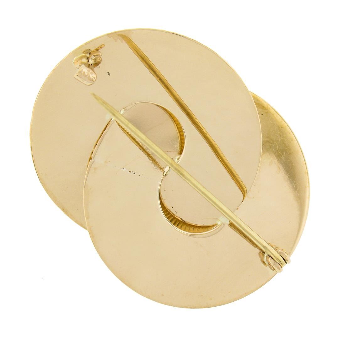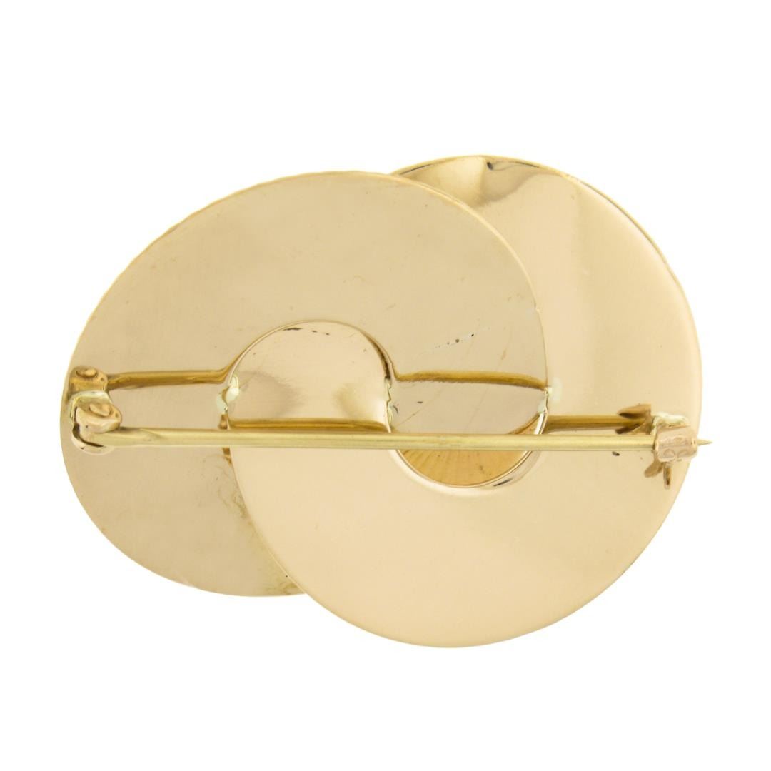 A vintage solid 14k yellow gold brooch by Krementz, with 1 round shape cultured pearl (6.5mm). Measures 29.1x38.8mm and weighs a total of 9.38 grams.