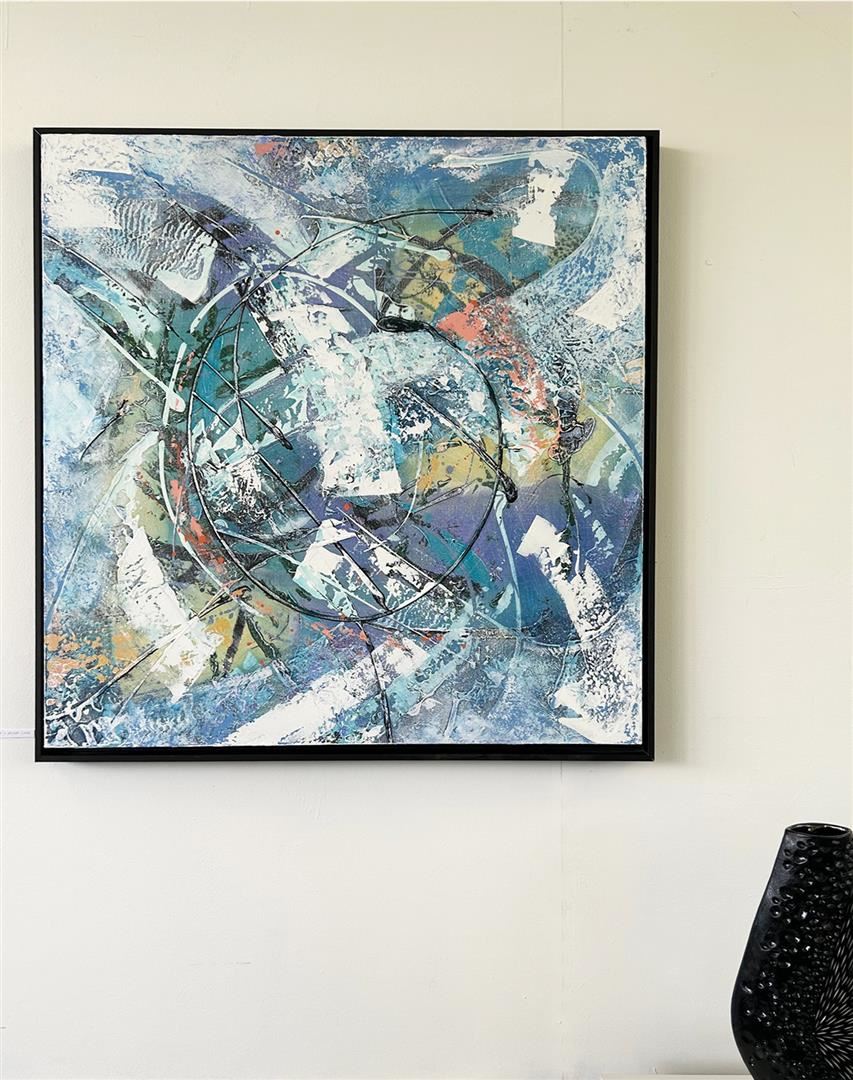 Abstract with movement, vibrant color and surface texture. 36x36" Original acrylic on stretched canvas by MarionWood . COA.