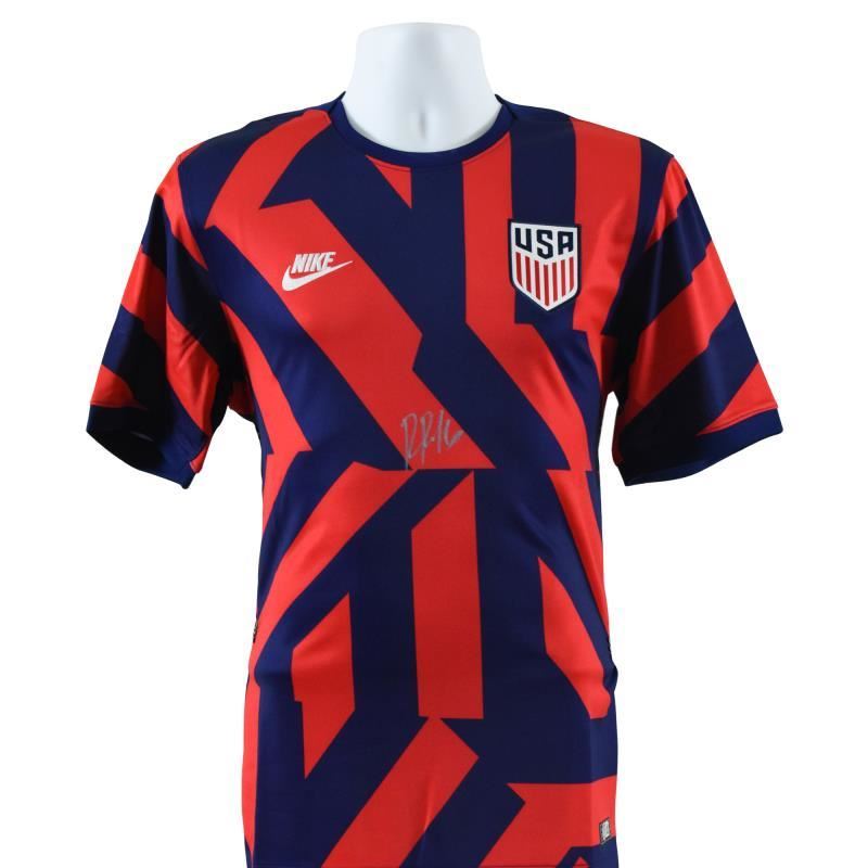 This is a replica Team USA jersey (Away) soccer Jersey autographed by Ricardo Pepi. This piece is presented with a Certificate of Authenticity from Beckett with a QR code and certification number. Measures approx. 30" x 28" (jersey).
