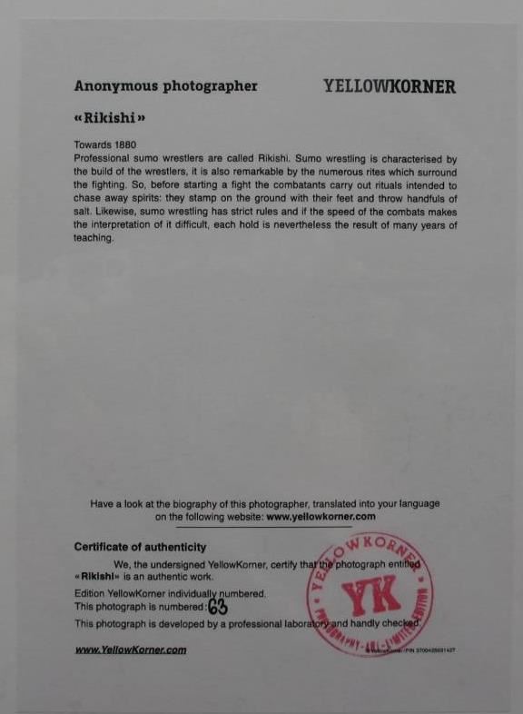Rikishi Certified Photograph YellowKorner Certified Photograph. Certificate of Authenticity from YellowKorner affixed to the back. Matted Dimensions 16"x20". Protected with Clear Mylar Sleeve.