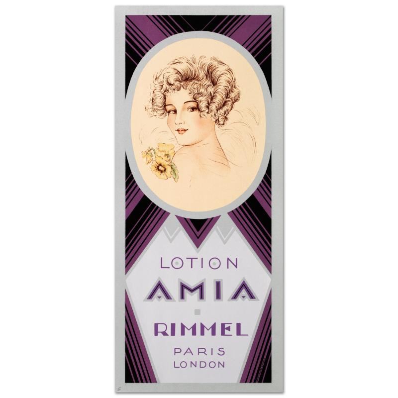"Rimmel-Lotion Amia" is a hand pulled lithograph on paper by the RE Society. Includes letter of authenticity. Measures approx. 10.5" x 23.5" (with border), 9" x 22.5" (image).