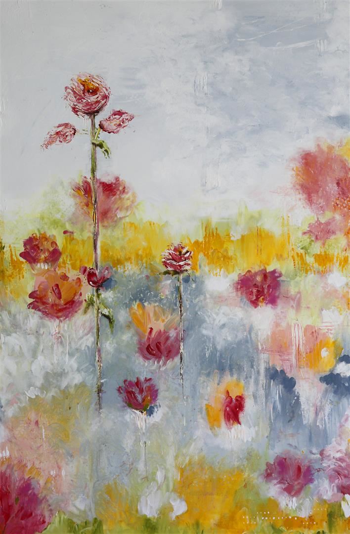 An original Acrylic/ oil pastel on stretched canvas by Adonna 24 x 36. Inspired by gardens of Monet.