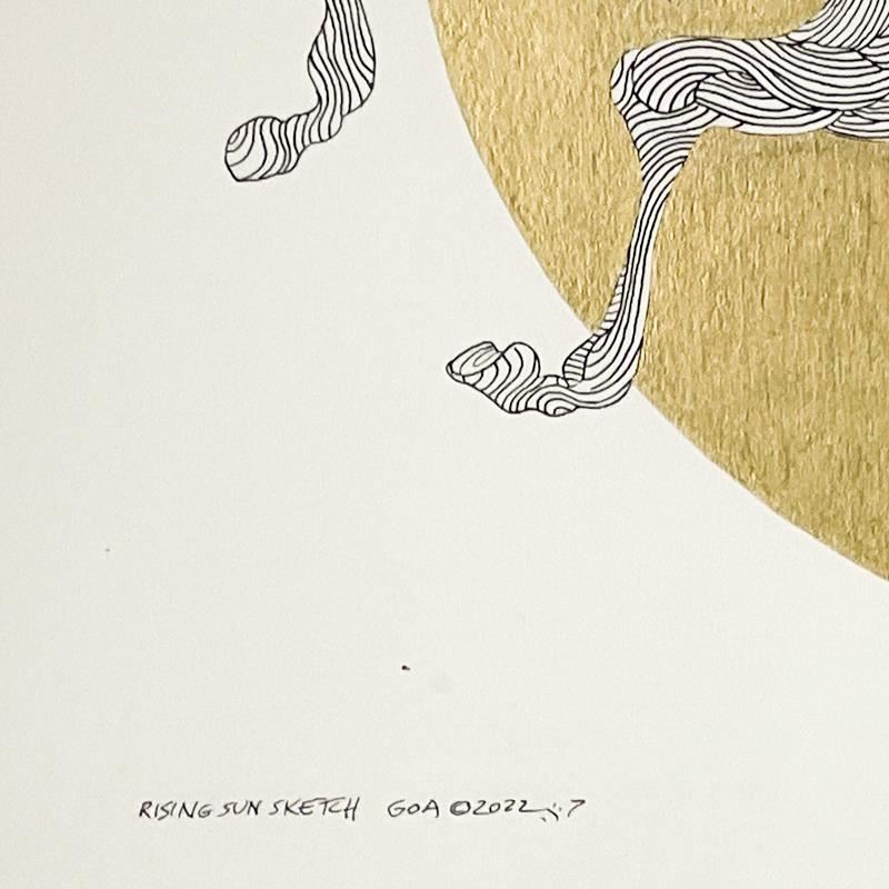 "Rising Sun Sketch GOA" is an original drawing on paper with hand laid gold leaf by Guillaume Azoulay, hand signed by the artist. This piece comes custom framed. Includes Letter of Authenticity. Measures approx. 24" x 22" (frame), 11.5" x 10" (image).