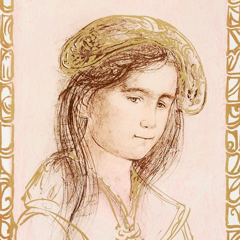 "Rita" is a limited edition lithograph on paper, numbered and hand signed by Edna Hibel (1917-2014). Includes Certificate of Authenticity! Measures approx. 13" x 20" (border) 10" x 16.5" (image).