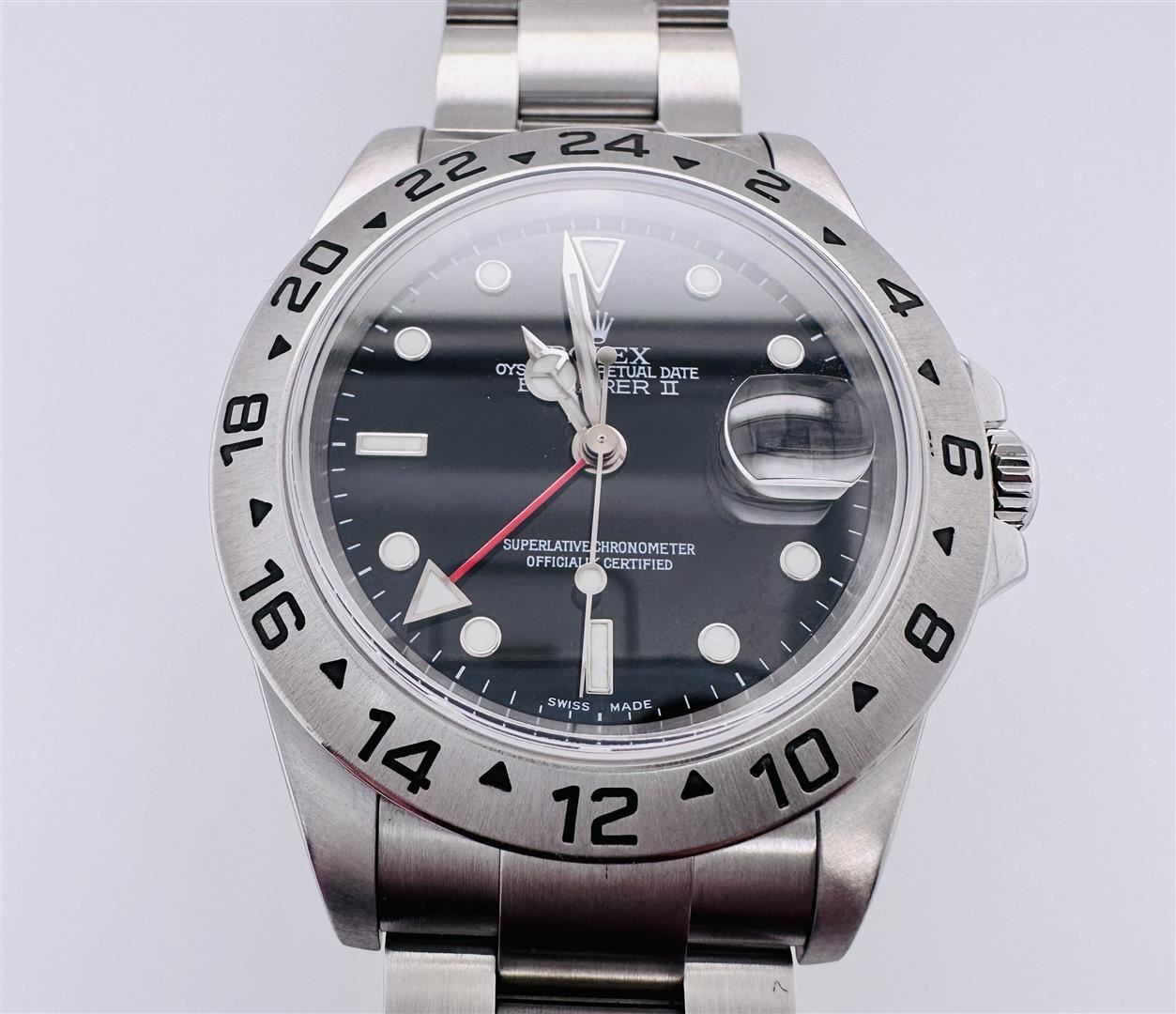 One Rolex 2003 Explorer II Stainless Steel 40mm Wristwatch with Black Dial. Preowned in excellent condition, this watch look like new! The watch comes with the original factory documentation.