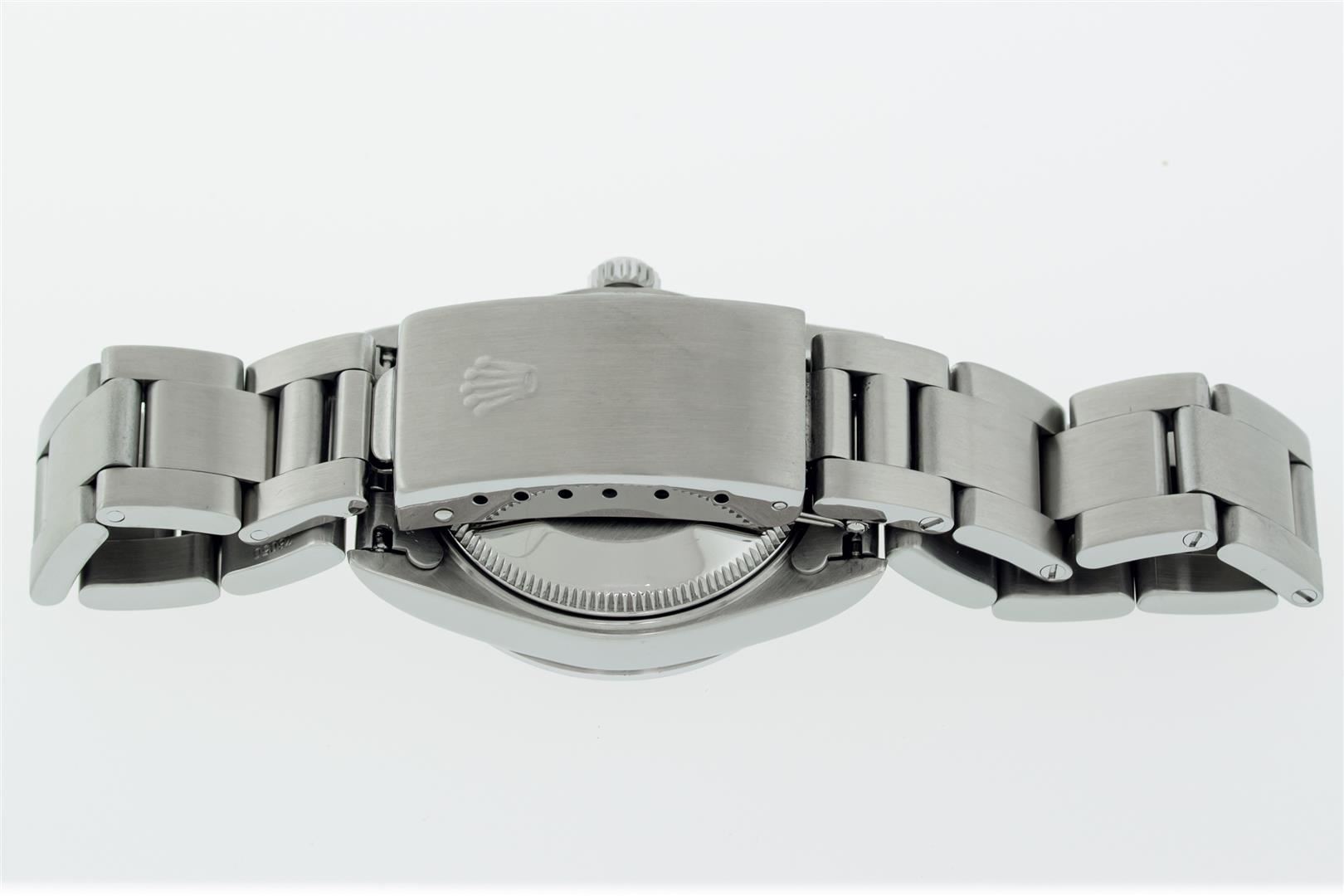 One Women's Pre Owned Midsize 31MM Stainless Steel Rolex Datejust Polished, Serviced & Electronically Tested, Rolex Stainless Steel Case Case: 31mm, Rolex Stainless Steel Crown, Rolex Bezel: 18K White Gold Fluted Bezel, Crystal: Sapphire With Cyclops Lens. Hands: Lumi Hands. Rolex Movement: Automatic Winding Movement 2235. Rolex Dial: Blue With Roman Hour Markers. Date Window: 3 O'Clock Position Date Display, Quickset, Model: Midsize Datejust. Condition: G-6 Extra Fine. Rolex Bracelet: Stainless Steel Oyster Band. Bright Polish. 6.0 Inch Length, Adjustable. Standard Clasp, With Rolex Logo. This Watch Has Been Serviced Time Tested And Is In Excellent Condition It Is Free Of All Scratches And Dents.