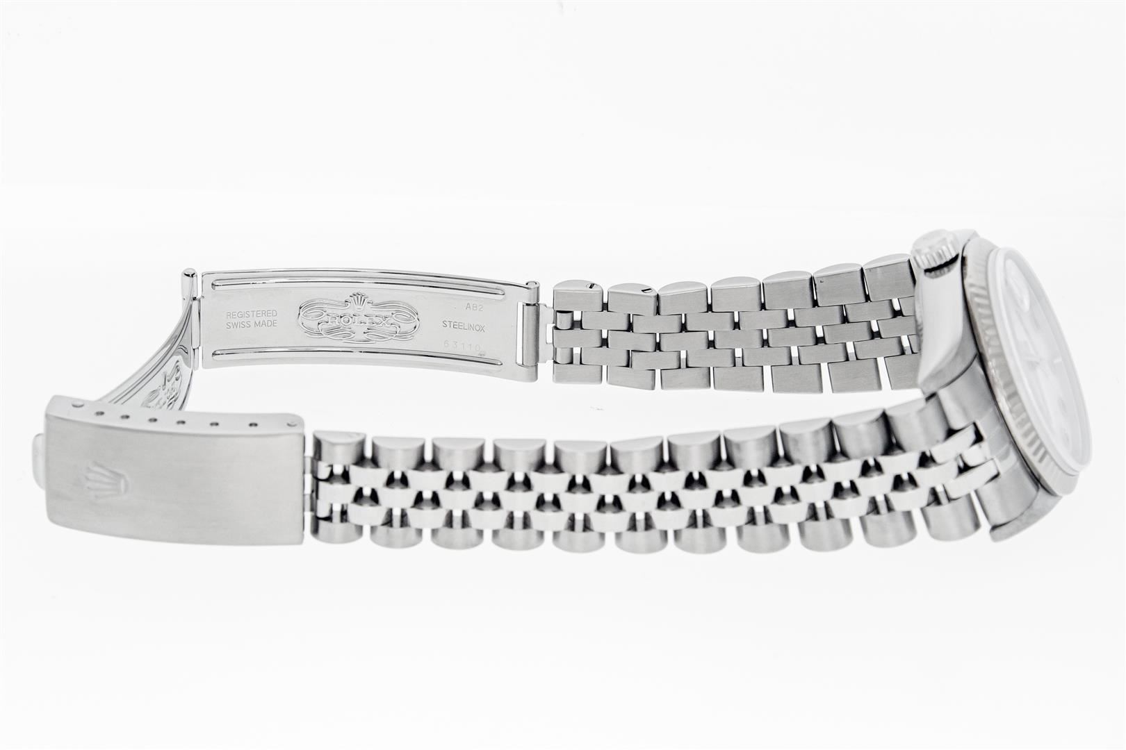 One Women's Pre Owned Midsize 31MM Stainless Steel Rolex Datejust Polished, Serviced & Electronically Tested, Rolex Stainless Steel Case Case: 31mm, Rolex Stainless Steel Crown, Rolex Bezel: 18K White Gold Fluted Bezel, Crystal: Sapphire With Cyclops Lens. Hands: Solid Hands. Rolex Movement: Automatic Winding Movement 2235. Rolex Dial: Mother Of Pearl With Arabic Hour Markers. Date Window: 3 O'Clock Position Date Display, Quickset, Model: Midsize Datejust. Condition: G-6 Extra Fine. Rolex Bracelet: Stainless Steel Jubilee Band. Bright Polish. 6.0 Inch Length, Adjustable. Standard Clasp, With Rolex Logo. This Watch Has Been Serviced Time Tested And Is In Excellent Condition It Is Free Of All Scratches And Dents.
