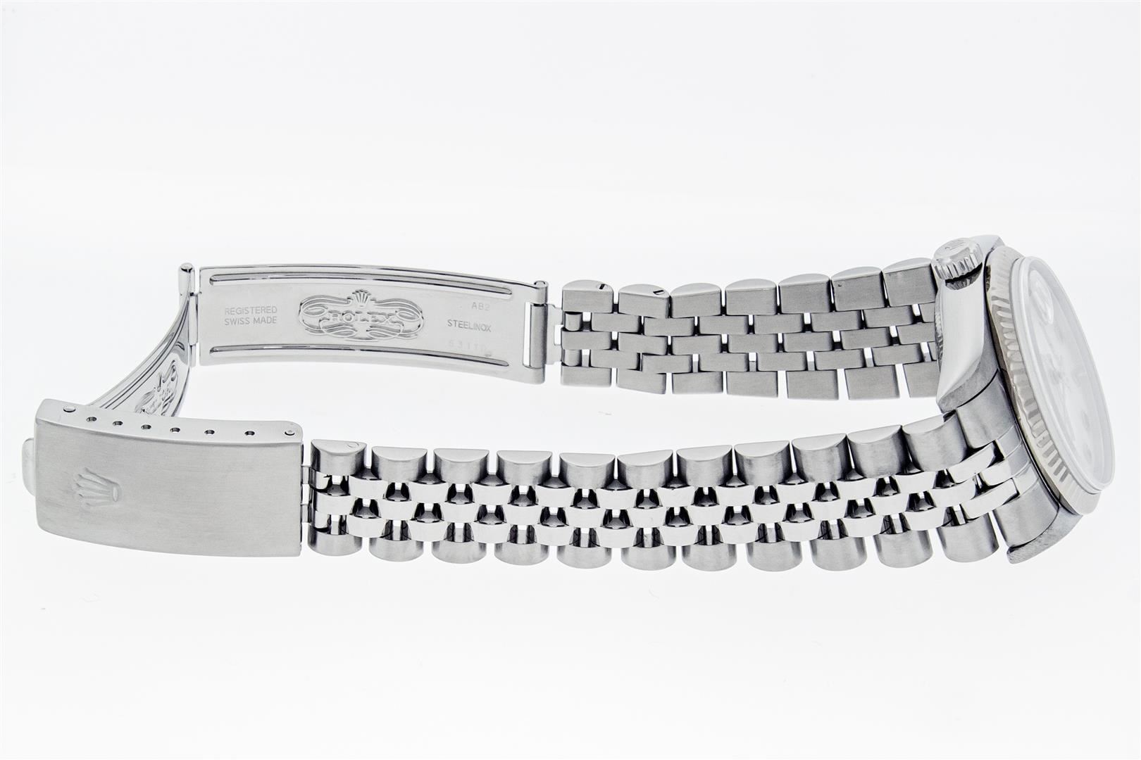 One Women's Pre Owned Midsize 31MM Stainless Steel Rolex Datejust Polished, Serviced & Electronically Tested, Rolex Stainless Steel Case Case: 31mm, Rolex Stainless Steel Crown, Rolex Bezel: 18K White Gold Fluted Bezel, Crystal: Sapphire With Cyclops Lens. Hands: Solid Hands. Rolex Movement: Automatic Winding Movement 2235. Rolex Dial: Mother Of Pearl With Arabic Hour Markers. Date Window: 3 O'Clock Position Date Display, Quickset, Model: Midsize Datejust. Condition: G-6 Extra Fine. Rolex Bracelet: Stainless Steel Jubilee Band. Bright Polish. 6.0 Inch Length, Adjustable. Standard Clasp, With Rolex Logo. This Watch Has Been Serviced Time Tested And Is In Excellent Condition It Is Free Of All Scratches And Dents.