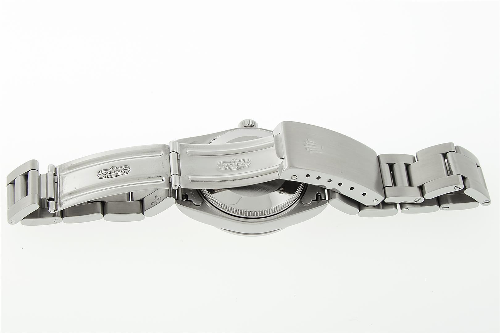 One Women's Pre Owned Midsize 31MM Stainless Steel Rolex Datejust Polished, Serviced & Electronically Tested, Rolex Stainless Steel Case Case: 31mm, Rolex Stainless Steel Crown, Rolex Bezel: 18K White Gold Fluted Bezel, Crystal: Sapphire With Cyclops Lens. Hands: Lumi Hands. Rolex Movement: Automatic Winding Movement 2235. Rolex Dial: White Roman With Index Hour Markers. Date Window: 3 O'Clock Position Date Display, Quickset, Model: Midsize Datejust. Condition: G-6 Extra Fine. Rolex Bracelet: Stainless Steel Oyster Band. Bright Polish. 6.0 Inch Length, Adjustable. Standard Clasp, With Rolex Logo. This Watch Has Been Serviced Time Tested And Is In Excellent Condition It Is Free Of All Scratches And Dents. This Watch Comes With A Rolex Box, Wallet, & Booklet.