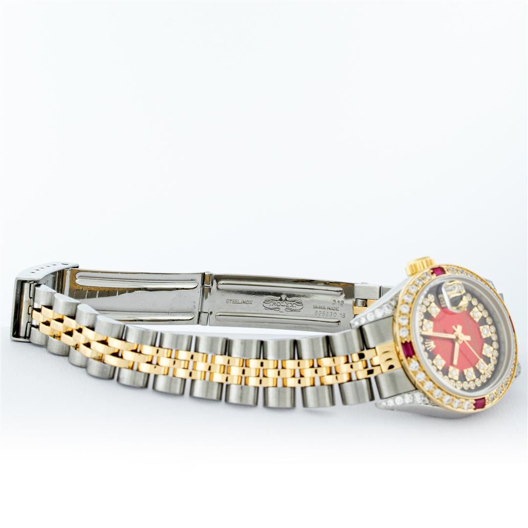 Rolex Ladies 2 Tone Red Vignette String Diamond Lugs & Ruby Datejust Wristwatch