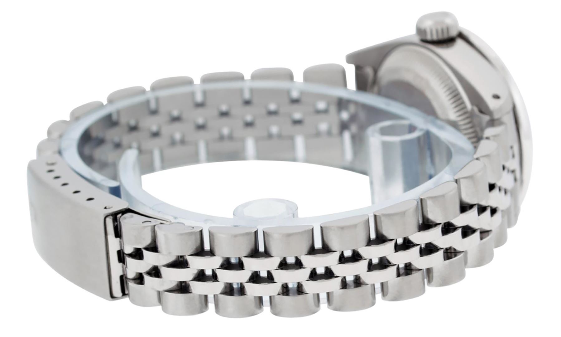 Rolex Ladies Stainless Steel Rolex Datejust Polished Bright with Satin Finish, Serviced & Electronically Tested, Stainless Steel Case: 26mm, Stainless Steel Crown, Custom Bezel: New Stainless Steel Beadset Diamond Bezel, Diamond Count: 44 Diamonds Total Weight 1.00 Carat, Clarity: SI-VS, Color: G to H. Custom Crystal: New Synthetic Sapphire Cyclops Lens. Custom Hands: New Luminescent Hands. Movement: Automatic Winding Movement. Custom Dial: Refinished Pink Mother Of Pearl With Diamond Hour Markers, Diamond Count: 10 Diamonds in Dial G To H In Color, Clarity: SI-VS. Date Window: 3 O'Clock Position Date Display, Model: Datejust. Condition: G-6 Extra Fine. Bracelet: Stainless Steel Jubilee Band. Bright Polish & Satin Finish. 6.0 Inch Length, Adjustable. Standard Clasp, With Rolex Logo. This Watch Has Been Serviced Time Tested And Is In Excellent Condition It Is Free Of All Scratches And Dents.