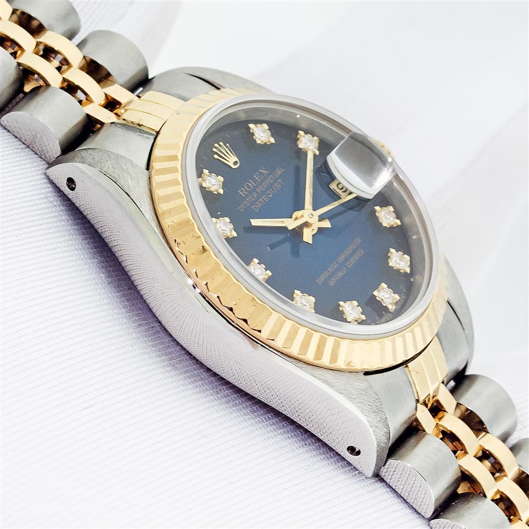 Rolex Ladies 2T Quickset Blue Vignette Diamond Dial Datejust 26MM