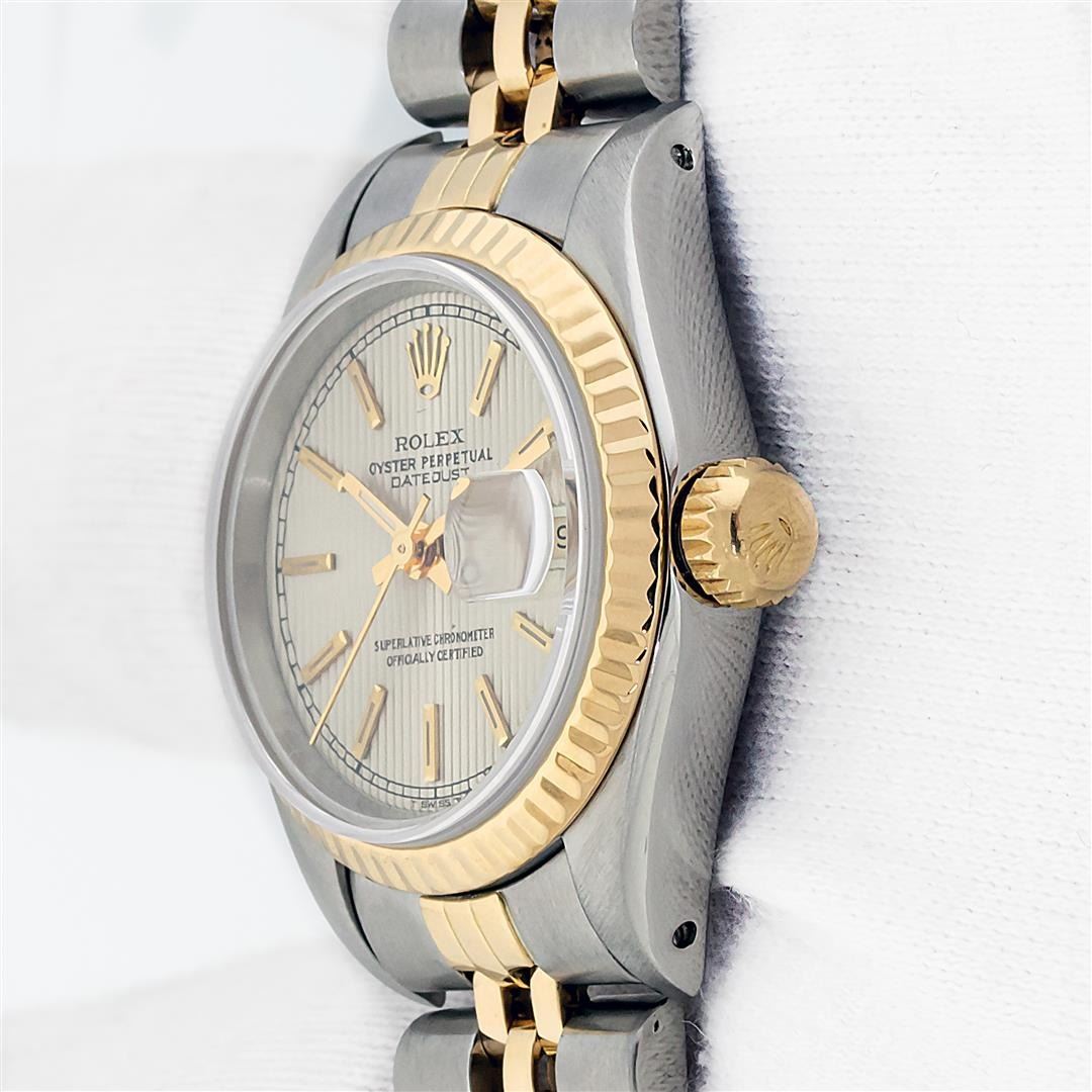 Rolex Ladies 2T Quickset Factory Silver Tapestry Dial Datejust Wristwatch 26MM