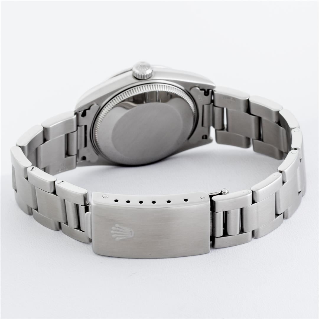 One Women's Rolex Midsize Stainless Steel Datejust Polished, Serviced & Electronically Tested, Rolex Stainless Steel Case Case: 31mm, Rolex Stainless Steel Crown, Rolex Bezel: 18K White Gold Fluted Bezel, Crystal: Sapphire With Cyclops Lens. Hands: Lumi Hands. Rolex Movement: Automatic Winding Movement 2235. Rolex Dial: Factory Blue Dial With Roman Hour Markers And Square Track. Date Window: 3 O'Clock Position Date Display, Quickset, Model: Midsize Quickset Datejust. Condition: G-6 Extra Fine. Rolex Bracelet: Stainless Steel Oyster Band. Bright Polish. 6.0 Inch Length, Adjustable. Standard Clasp, With Rolex Logo. This Pre Owned Watch Has Been Serviced Time Tested And Is In Excellent Condition It Is Free Of All Scratches And Dents.