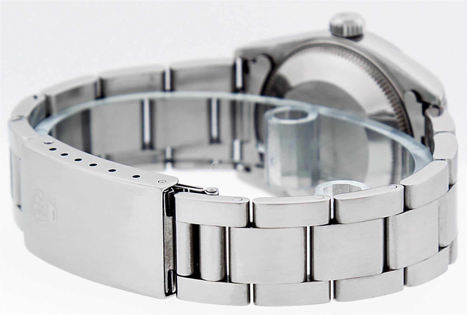 One Women's Midsize Rolex Stainless Steel Datejust Polished, Serviced & Electronically Tested, Rolex Stainless Steel Case Case: 31mm, Rolex Stainless Steel Crown, Rolex Bezel: Stainless Steel Smooth Bezel, Crystal: Sapphire With Magnified Date Window. Hands: Solid Hands. Rolex Movement: Automatic Winding Movement Caliber 2135. Rolex Dial: Salmon Roman Dial With Square Track. Date Window: 3 O'Clock Position Date Display, Quickset, Model: Quickset Midsize Datejust. Condition: G-6 Extra Fine. Rolex Bracelet: Stainless Steel Oyster Band. Bright Polish. 6.0 Inch Length, Adjustable. Standard Clasp, With Rolex Logo. This Pre Owned Watch Has Been Serviced Time Tested And Is In Excellent Condition It Is Free Of All Scratches And Dents.