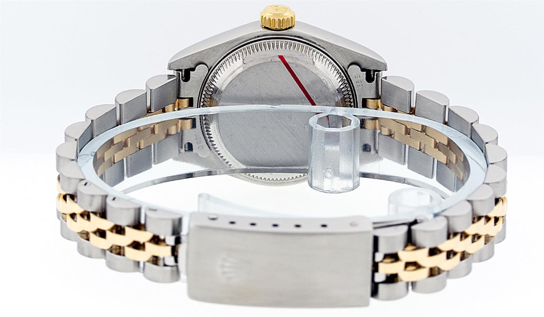 One Ladies Quickset Pre Owned 18K Two Tone Rolex Datejust Polished, Serviced & Electronically Tested, Rolex 18K Yellow Gold & Stainless Steel, Rolex Case: 26mm, Rolex 18K Yellow Gold Crown, Rolex Bezel: 18K Yellow Gold Fluted Bezel. Crystal: Sapphire With Magnified Date Window. Hands: Luminescent Hands. Rolex Movement: Automatic Winding Movement 2235. Rolex Dial: White Roman Dial With Square Track. Date Window: 3 O'Clock Position Date Display, Model: Quickset Datejust. Condition: G-6 Extra Fine. Rolex Bracelet: Two Tone 18K Yellow Gold & Stainless Steel Jubilee Band. Bright Polish. 6.0 Inch Length, Adjustable. Standard Clasp, With Rolex Logo. This Watch Has Been Serviced Time Tested And Is In Excellent Condition It Is Free Of All Scratches And Dents.