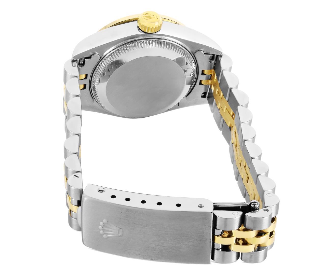 One Ladies Pre Owned Quickset Stainless Steel Rolex Datejust Polished Bright with Satin Finish, Serviced & Electronically Tested, Rolex Stainless Steel Case: 26mm, Rolex Yellow Gold Crown, Custom Bezel: New 18K Yellow Gold Diamond & Emerald Bezel, Stone Count: 28 Diamonds + 4 Emeralds On Bezel. Crystal: Sapphire With Magnified Date Window. Hands: Luminescent Hands. Rolex Movement: Automatic Winding Movement. Rolex Dial: Champagne with Roman Hour Markers and Square Track. Date Window: 3 O'Clock Position Date Display, Model: Quickset Datejust. Condition: G-6 Extra Fine. Rolex Bracelet: 18K Yellow Gold And Stainless Steel Jubilee Band. Bright Polish & Satin Finish. 6.0 Inch Length, Adjustable. Standard Clap, With Rolex Logo. This Watch Has Been Serviced Time Tested And Is In Excellent Condition It Is Free Of All Scratches And Dents.