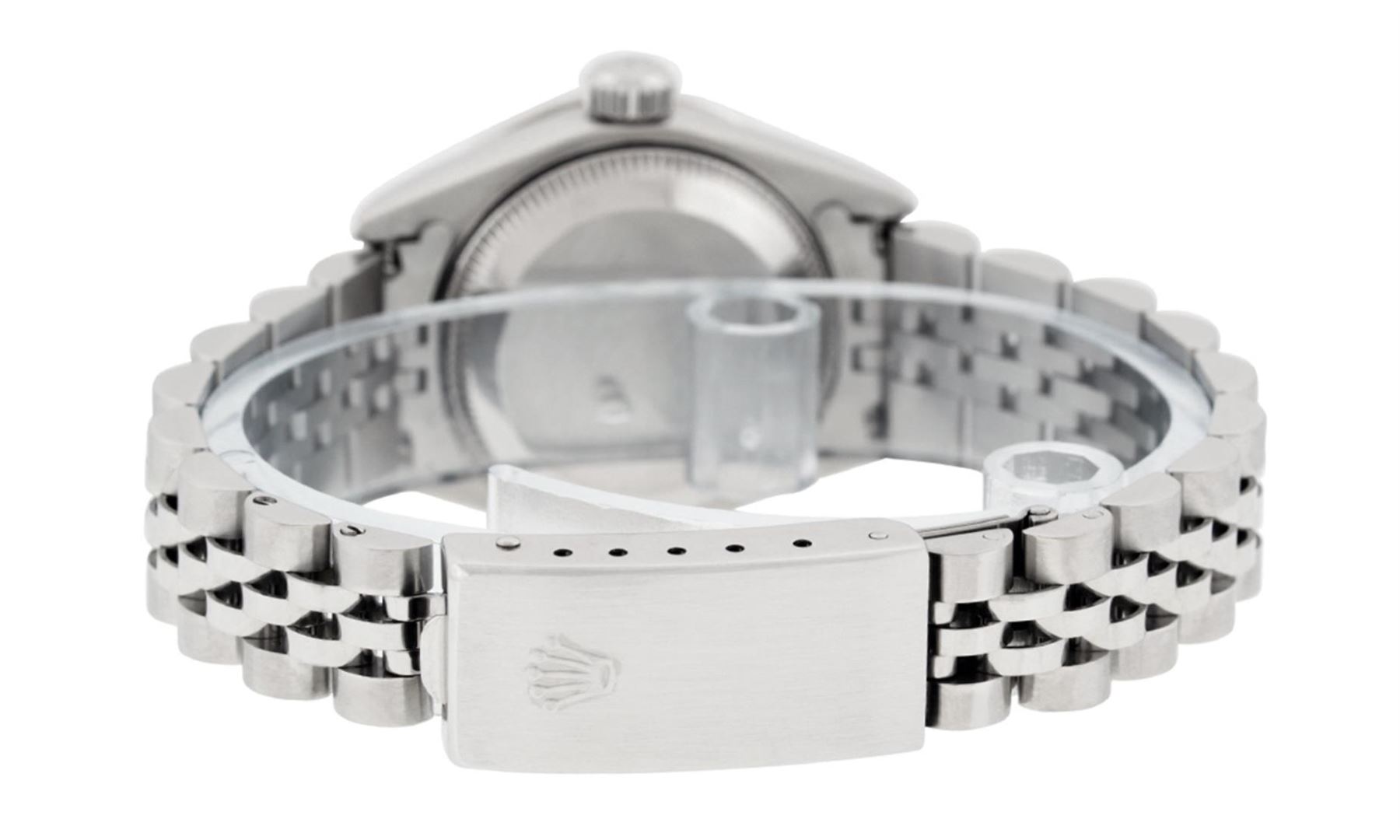 One Quickset Ladies Pre Owned Quickset Stainless Steel Rolex Datejust Polished Bright with Satin Finish, Serviced And Electronically Tested, Stainless Steel Case: 26mm, Stainless Steel Crown, Custom Bezel: New 18K White Gold Diamond + Emerald Beadset Diamond Bezel, Stone Count: 28 Diamonds + 4 Emeralds. Custom Crystal: New Sapphire With Magnified Date Window. Custom Hands: New Luminescent Hands. Rolex Movement: Automatic Winding Movement 2235. Custom Dial: Custom Salmon Dial With Added Diamonds, 10 Diamonds On Dial. Date Window: 3 O'Clock Position Date Display, Model: Quickset 2235 Datejust. Condition: G-6 Extra Fine. Rolex Bracelet: Stainless Steel Jubilee Band. Bright Polish And Satin Finish. 6.0 Inch Length, Adjustable. Standard Clasp, With Rolex Logo. This Watch Has Been Serviced Time Tested And Is In Excellent Condition It Is Free Of All Scratches And Dents.