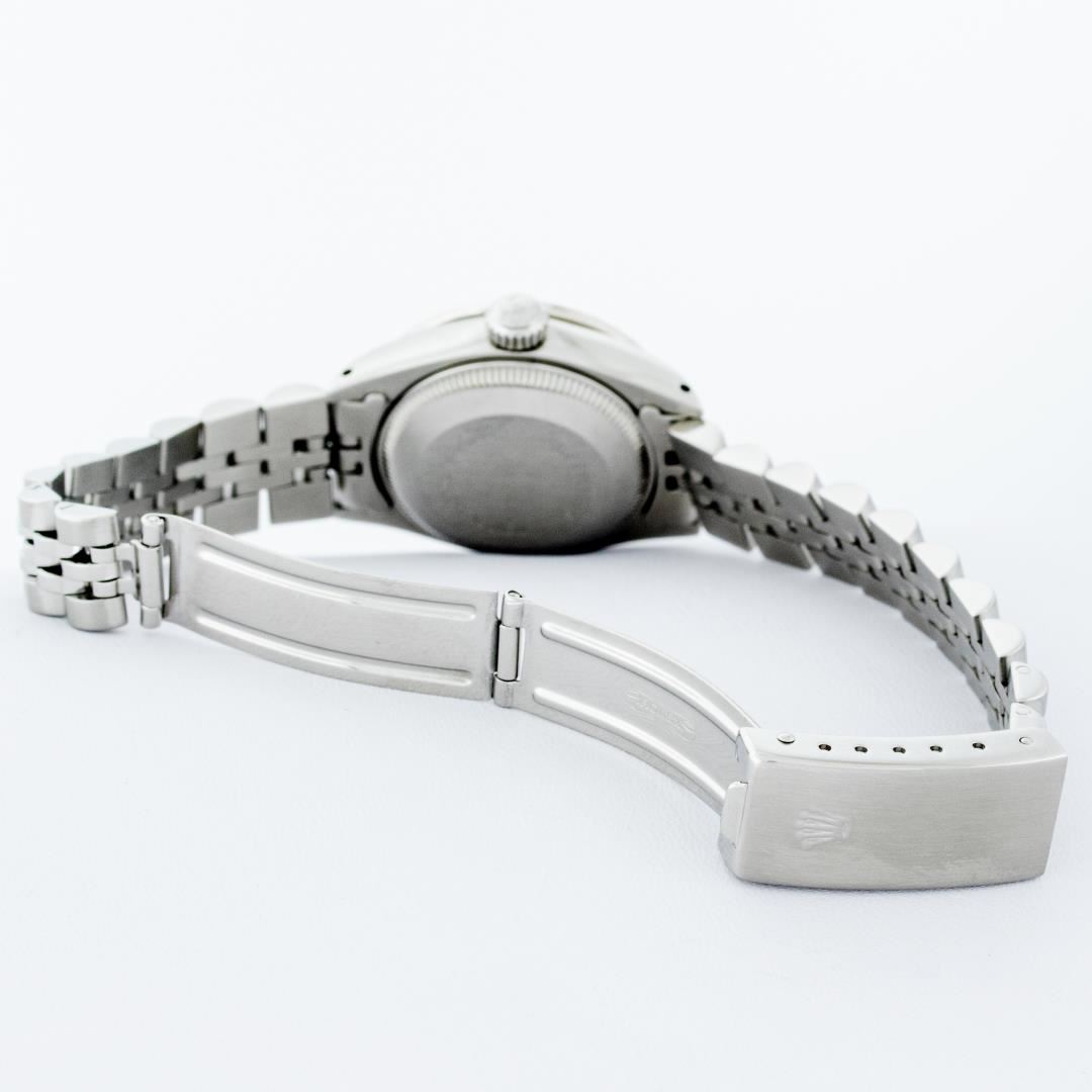 One Ladies Pre Owned Quickset Stainless Steel Rolex Datejust Polished Bright with Satin Finish, Serviced And Electronically Tested, Stainless Steel Case: 26mm, Stainless Steel Crown, Custom Bezel: New 18K White Gold Emerald Beadset Diamond Bezel, Diamond + Gem Count: 28 Diamonds + 4 Emeralds. Custom Crystal: New Sapphire With Date Window. Custom Hands: New Luminescent Hands. Rolex Movement: Automatic Winding Movement 2135. Custom Dial: Custom White Dial With Added Diamond Hour Markers, 10 Diamond On Dial. Date Window: 3 O'Clock Position Date Display, Model: Quickset Datejust. Condition: G-6 Extra Fine. Rolex Bracelet: Stainless Steel Jubilee Band. Bright Polish And Satin Finish. 6.0 Inch Length, Adjustable. Standard Clasp, With Rolex Logo. This Watch Has Been Serviced Time Tested And Is In Excellent Condition It Is Free Of All Scratches And Dents.
