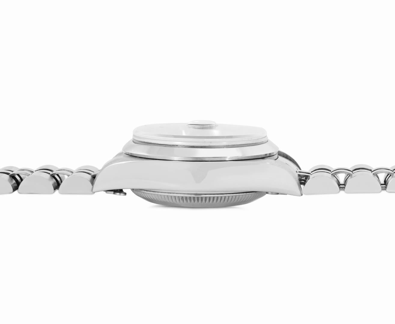 One Rolex Ladies Pre Owned Quickset Stainless Steel Date Wristwatch Polished Bright with Satin Finish, Serviced And Electronically Tested, Stainless Steel Case: 26mm, Stainless Steel Crown, Rolex Stainless Steel Smooth Bezel. Crystal: Sapphire With Magnified Date Window. Hands: Luminescent Hands. Rolex Movement: 2235 Automatic Winding Movement. Rolex Dial: Factory Black With Index Hour Markers, Dash Track, And Lumi Dots. Date Window: 3 O'Clock Position Date Display, Model: Sapphire Date. Condition: G-6 Extra Fine. Rolex Bracelet: Stainless Steel Jubilee Band. Bright Polish And Satin Finish. 6.0 Inch Length, Adjustable. Standard Clasp, With Rolex Logo. This Watch Has Been Serviced And Time Tested. It Is In Excellent Condition, Free Of All Scratches And Dents. This Watch Comes With A Rolex Box.