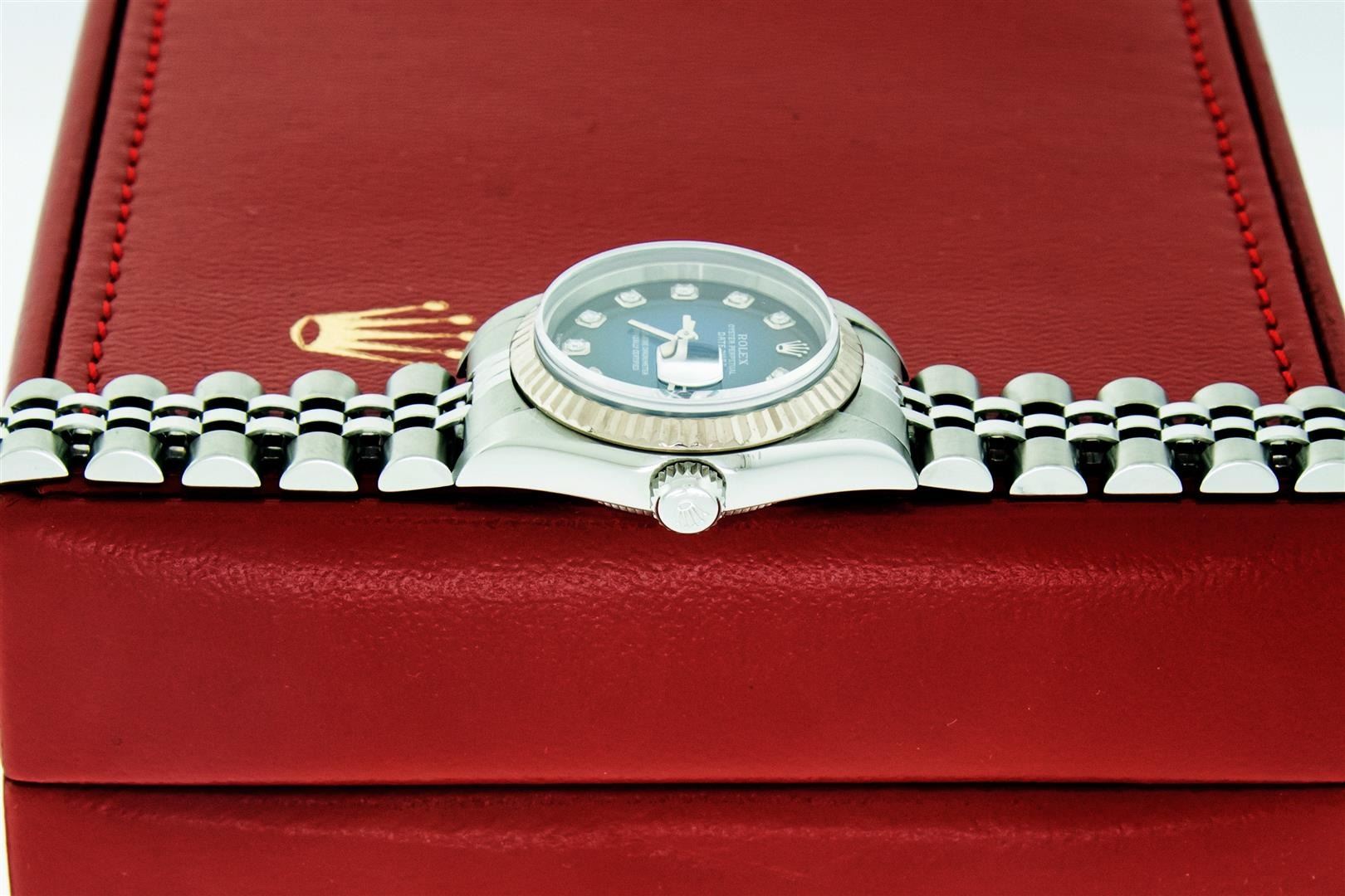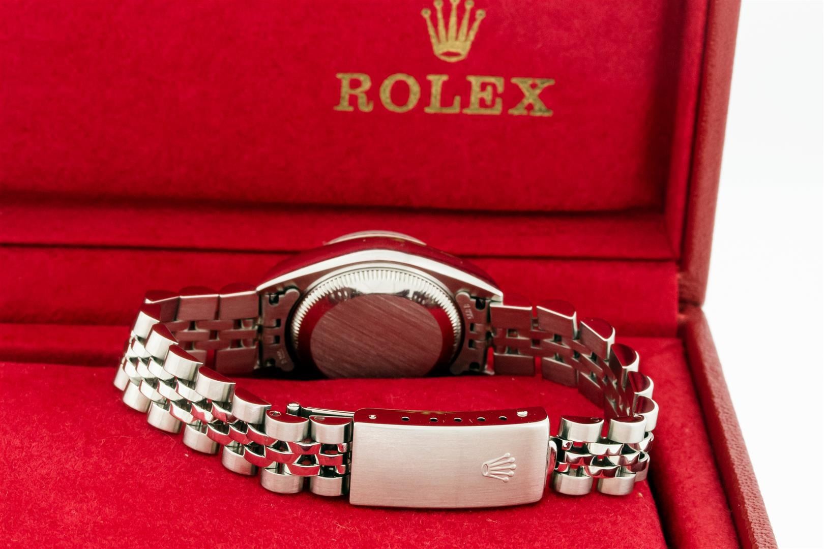One Ladies Quickset Pre Owned Stainless Steel Rolex Datejust Polished Bright with Satin Finish, Serviced & Electronically Tested, Stainless Steel Case: 26mm, Stainless Steel Crown, Bezel: Rolex 18K White Gold Fluted Bezel. Crystal: Sapphire With Magnified