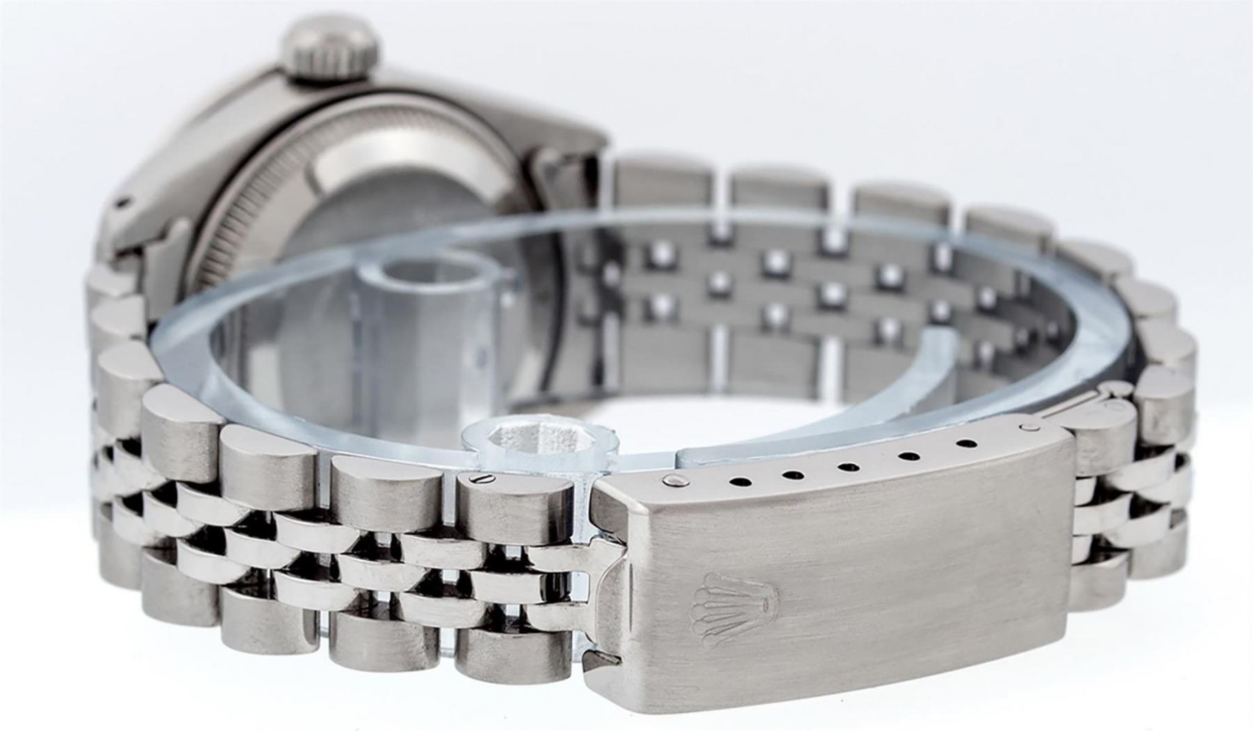 One Ladies Stainless Steel Rolex Datejust Polished Bright with Satin Finish, Serviced & Electronically Tested, Stainless Steel Case: 26mm, Stainless Steel Crown, Custom Bezel: New 18K White Gold Emerald Beadset Diamond Bezel, Diamond + Gem Count: 28 Diamonds + 4 Emeralds. Total Weight .70 Carat, Clarity: SI-VS, Color: G to H. Custom Crystal: New Scratch Resistant Synthetic Sapphire Cyclops Lens. Custom Hands: New Luminescent Hands. Movement: Automatic Winding Movement. Custom Dial: Refinished Green With Diamond Hour Markers, 10 Diamond in Dial G To H In Color, Clarity: SI-VS. Date Window: 3 O'Clock Position Date Display, Model: Datejust. Condition: G-6 Extra Fine. Bracelet: Stainless Steel Jubilee Band. Bright Polish & Satin Finish. 6.0 Inch Length, Adjustable. Standard Clasp, With Rolex Logo. This Watch Has Been Serviced Time Tested And Is In Excellent Condition It Is Free Of All Scratches And Dents.
