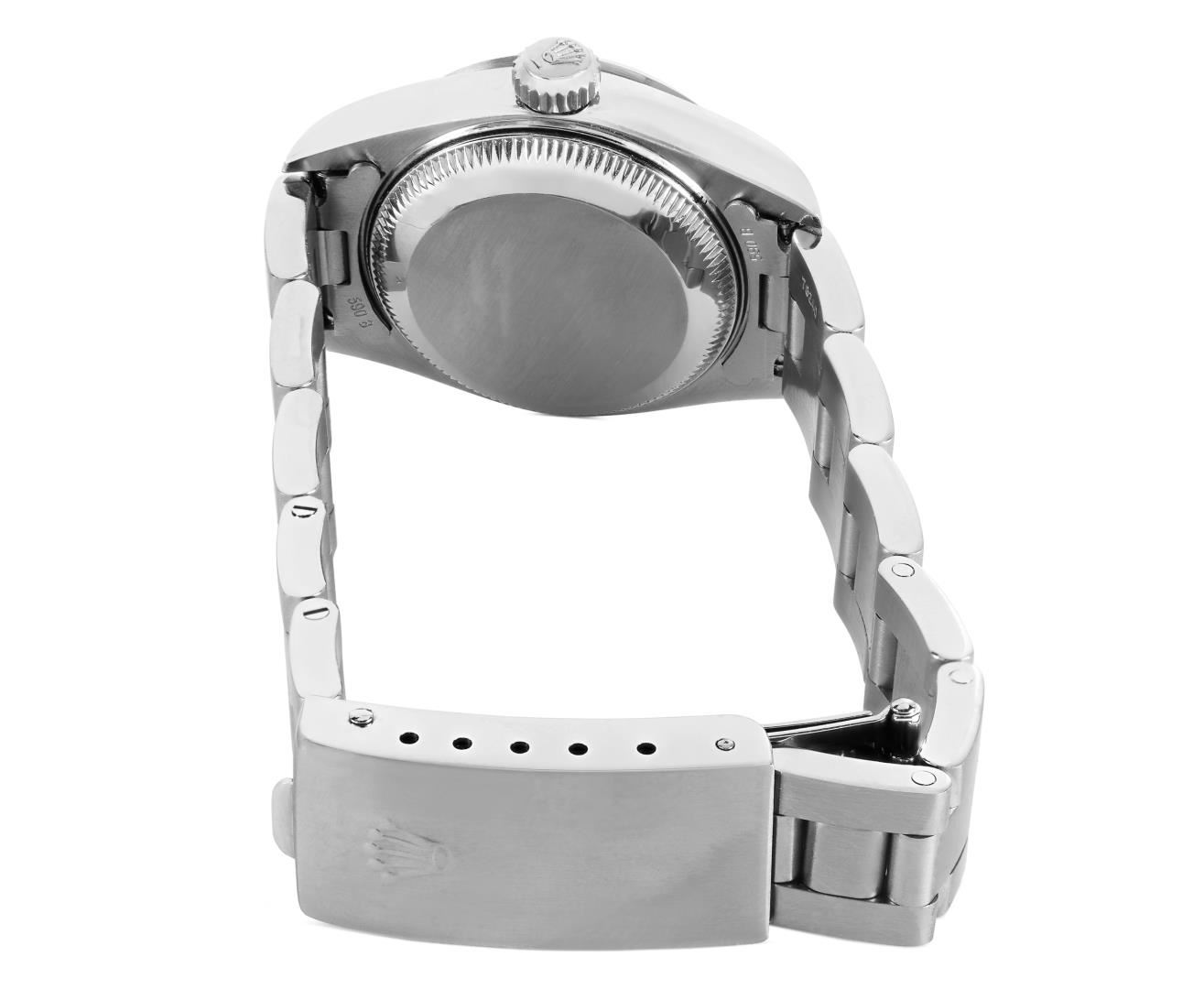 One Rolex Ladies Pre Owned Quickset Stainless Steel Date Wristwatch Polished Bright with Satin Finish, Serviced & Electronically Tested, Stainless Steel Case: 26mm, Stainless Steel Crown, Rolex Stainless Steel Smooth bezel. Crystal: Sapphire With Magnified Date Window. Hands: Luminescent Hands. Rolex Movement: 2235 Automatic Winding Movement. Rolex Dial: Factory White With Roman Hour Markers, Square Track. Date Window: 3 O'Clock Position Date Display, Model: Quickset Date. Condition: G-6 Extra Fine. Rolex Bracelet: Stainless Steel Oyster Band. Bright Polish And Satin Finish. 6.0 Inch Length, Adjustable. Standard Clasp, With Rolex Logo. This Watch Has Been Serviced And Time Tested. It Is In Excellent Condition, Free Of All Scratches And Dents.