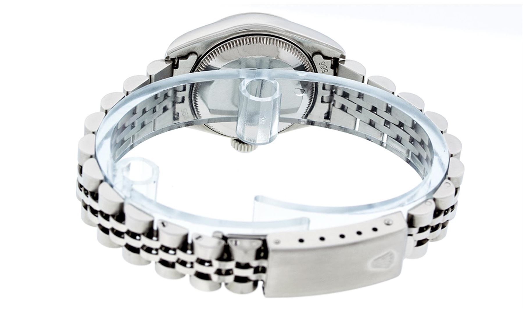 One Ladies Quickset Stainless Steel Rolex Datejust Polished Bright with Satin Finish, Serviced & Electronically Tested, Stainless Steel Case: 26mm, Stainless Steel Crown, Bezel: Stainless Steel Smooth Bezel. Custom Crystal: New Scratch Resistant Sapphire Cyclops Lens. Custom Hands: New Luminescent Hands. Movement: Automatic Winding Movement. Dial: Silver Index Dial With Luminescent Dots & Dash Track. Date Window: 3 O'Clock Position Date Display, Model: Quickset Datejust. Condition: G-6 Extra Fine. Bracelet: Stainless Steel Jubilee Band. Bright Polish & Satin Finish. 6.0 Inch Length, Adjustable. Standard Clasp, With Rolex Logo. This Watch Has Been Serviced Time Tested And Is In Excellent Condition It Is Free Of All Scratches And Dents. This Watch Comes With A Rolex Box.