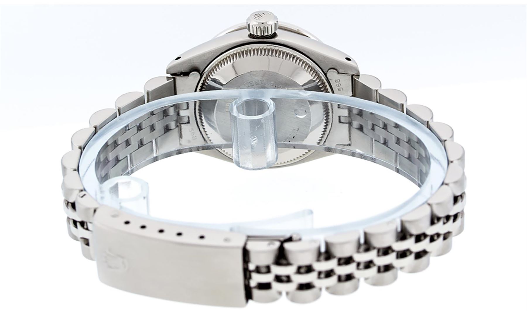 One Pre Owned Ladies Stainless Steel Rolex Polished Bright with Satin Finish, Serviced & Electronically Tested, Rolex Stainless Steel Case: 26mm, Rolex Stainless Steel Crown, Rolex Bezel: 14K White Gold Bezel. Custom Crystal: Acrylic With Magnified Date Window. Custom Hands: New Luminescent Hands. Rolex Movement: Automatic Winding Movement. Custom Dial: Refinished To Silver Roman Dial. Date Window: 3 O'Clock Position Date Display, Model: Datejust. Condition: G-6 Extra Fine. Rolex Bracelet: Stainless Steel Jubilee Band. Bright Polish & Satin Finish. 6.0 Inch Length, Adjustable. Standard Clasp, With Rolex Logo. This Watch Has Been Serviced Time Tested And Is In Excellent Condition It Is Free Of All Scratches And Dents.