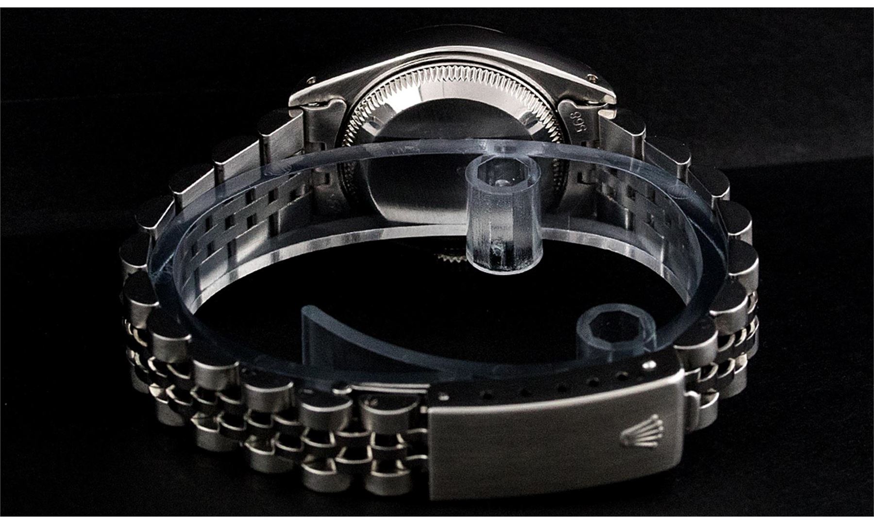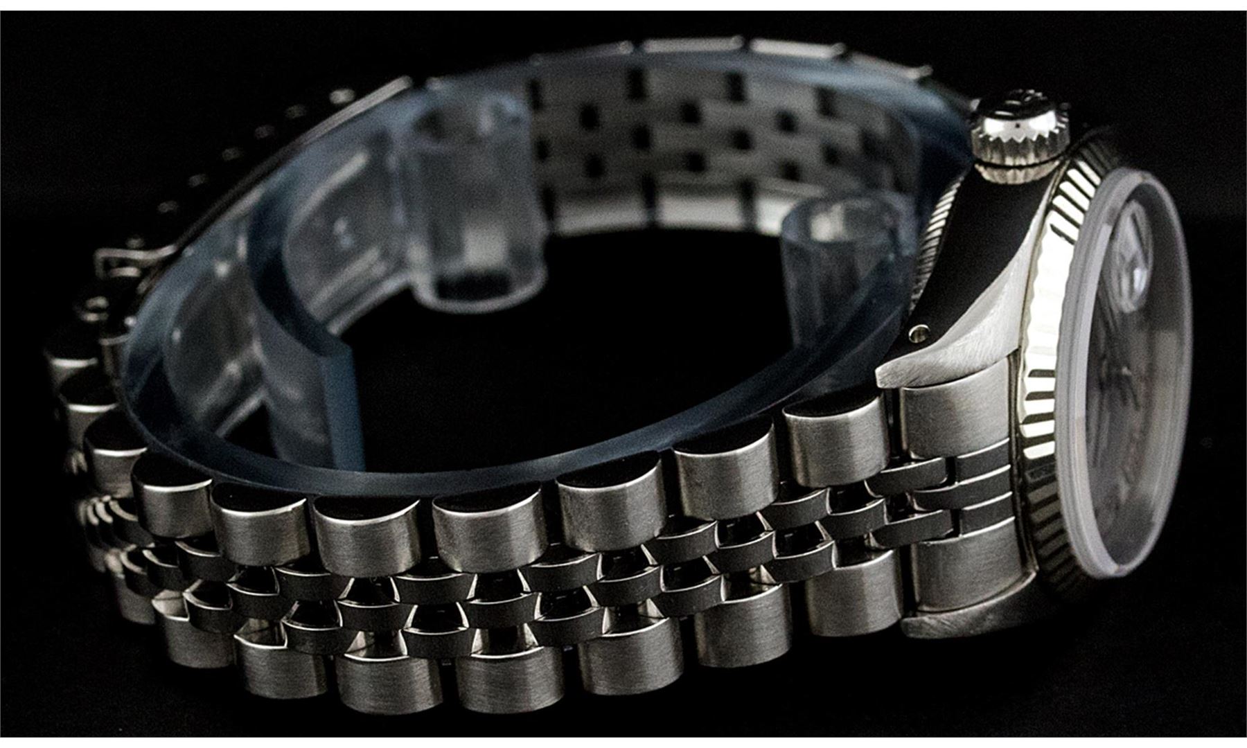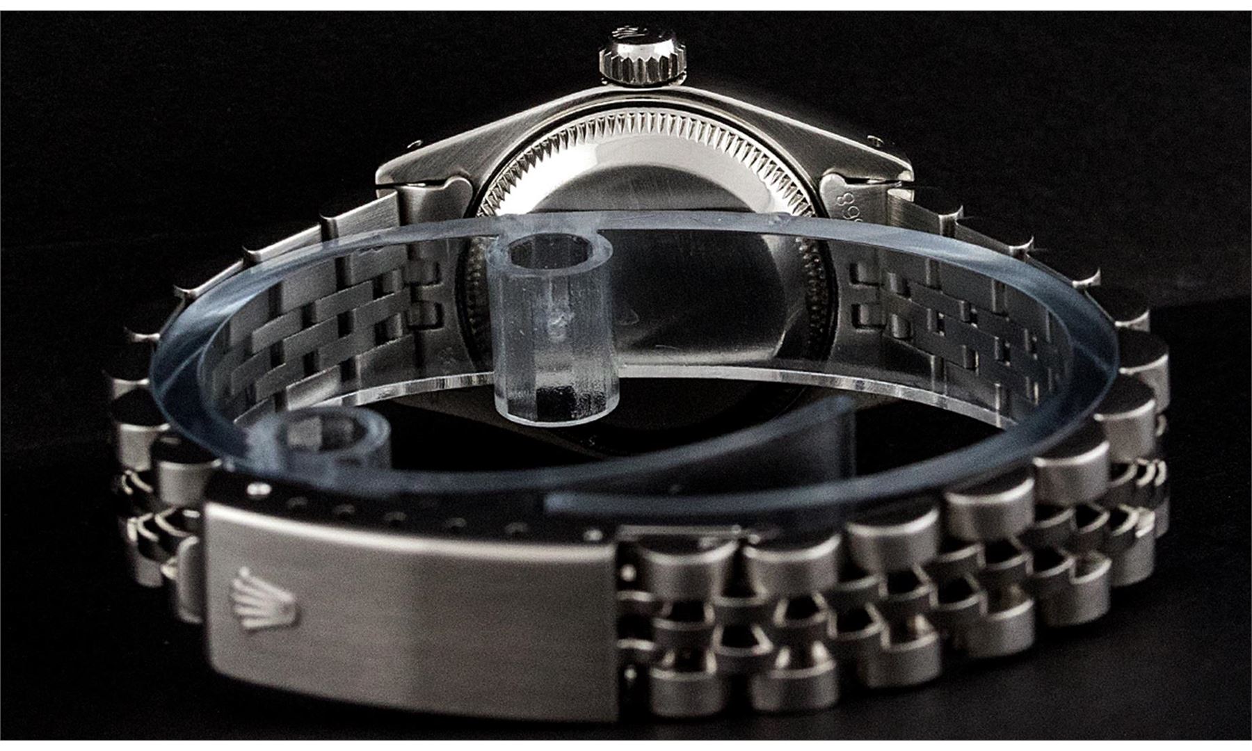 One Ladies Stainless Steel Rolex Datejust Polished Bright with Satin Finish, Serviced & Electronically Tested, Rolex Stainless Steel Case: 26mm, Rolex Stainless Steel Crown, Rolex Bezel: 14K White Gold Bezel. Custom Crystal: New With Cyclops Lens. Custom Hands: New Luminescent Hands. Rolex Movement: Automatic Winding Movement. Custom Dial: Slate Grey Roman. Date Window: 3 O'Clock Position Date Display, Model: Datejust. Condition: G-6 Extra Fine. Rolex Bracelet: Stainless Steel Jubilee Band. Bright Polish & Satin Finish. 6.0 Inch Length, Adjustable. Standard Clasp, With Rolex Logo. This Pre Owned Watch Has Been Serviced Time Tested And Is In Excellent Condition It Is Free Of All Scratches And Dents.