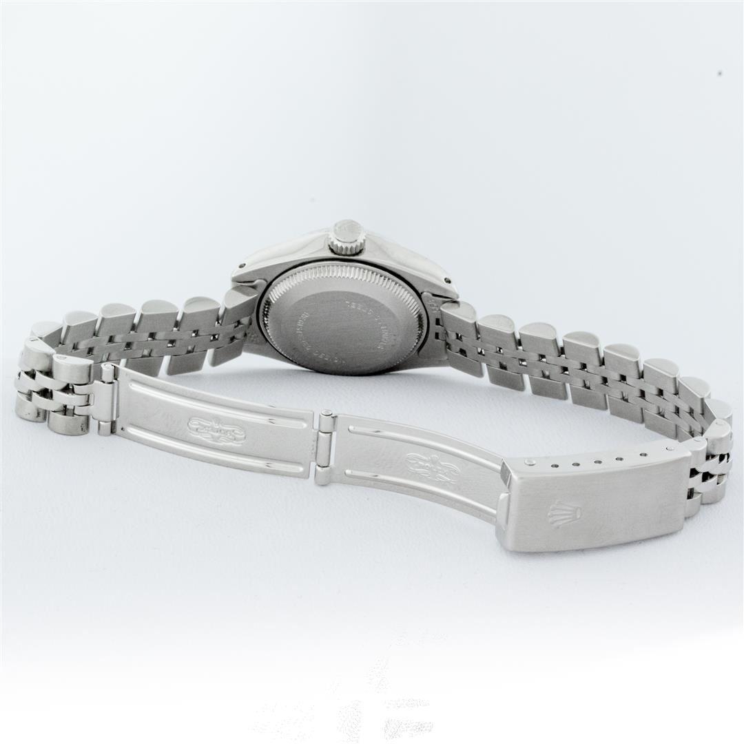 One Ladies Pre Owned Stainless Steel Rolex Polished Bright with Satin Finish, Serviced & Electronically Tested, Rolex Stainless Steel Case: 26mm, Rolex Stainless Steel Crown, Rolex Bezel: 14K White Gold Fluted Bezel. Custom Crystal: New With Magnified Date Window. Custom Hands: New Luminescent Hands. Rolex Movement: Automatic Winding Movement. Rolex Dial: White Arabic Dial With Dash Track, Date Window: 3 O'Clock Position Date Display, Model: Datejust. Condition: G-6 Extra Fine. Rolex Bracelet: Stainless Steel Jubilee Band. Bright Polish & Satin Finish. 6.0 Inch Length, Adjustable. Standard Clasp, With Rolex Logo. This Watch Has Been Serviced Time Tested And Is In Excellent Condition It Is Free Of All Scratches And Dents.
