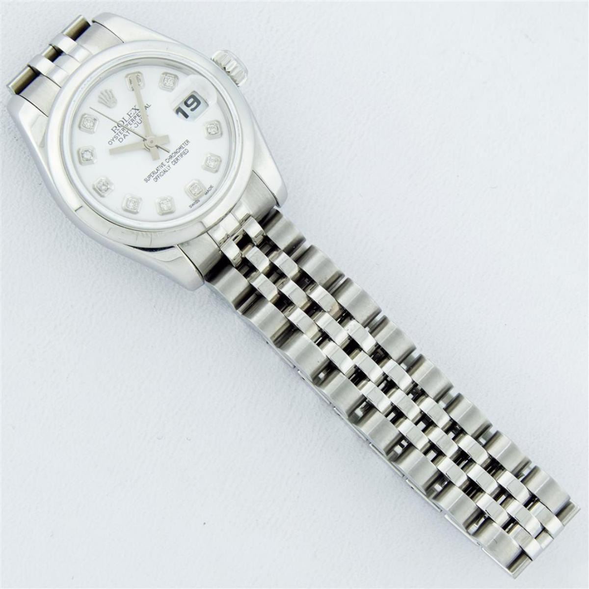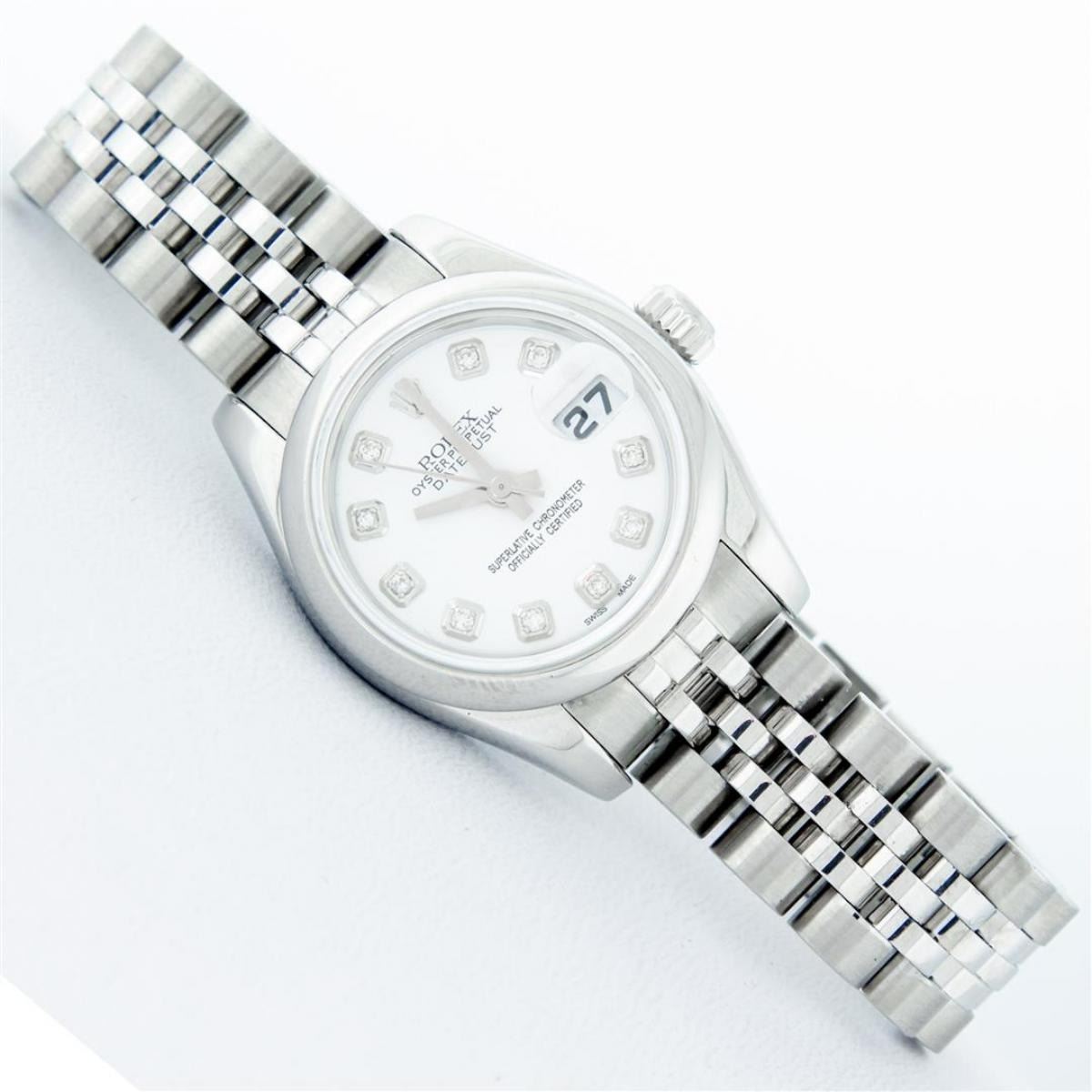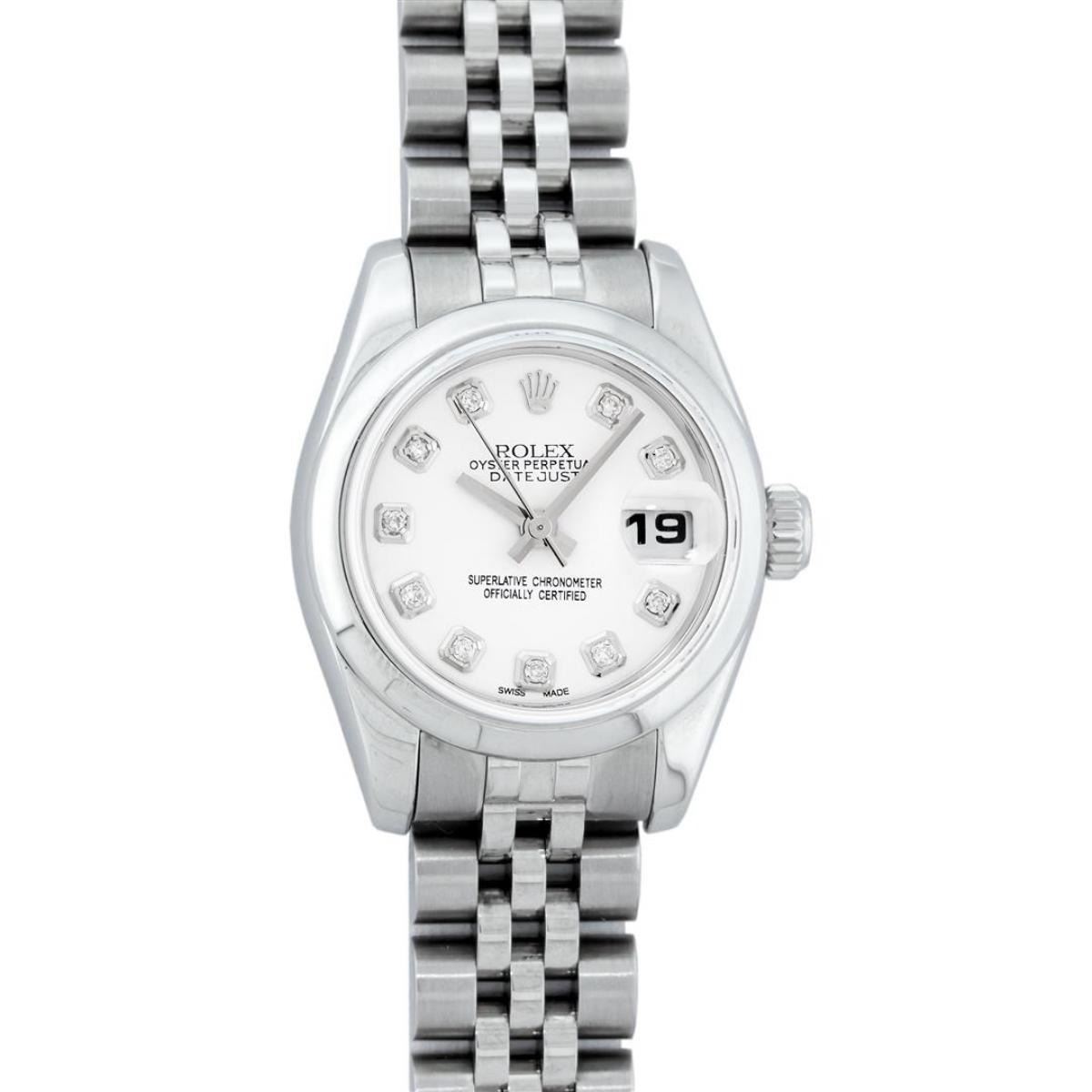 One Ladies Quickset Stainless Steel Rolex Datejust Polished Bright with Satin Finish, Serviced & Electronically Tested, Stainless Steel Case: 26mm, Stainless Steel Crown, Bezel: Stainless Steel Smooth Bezel. Custom Crystal: New Scratch Resistant Sapphire