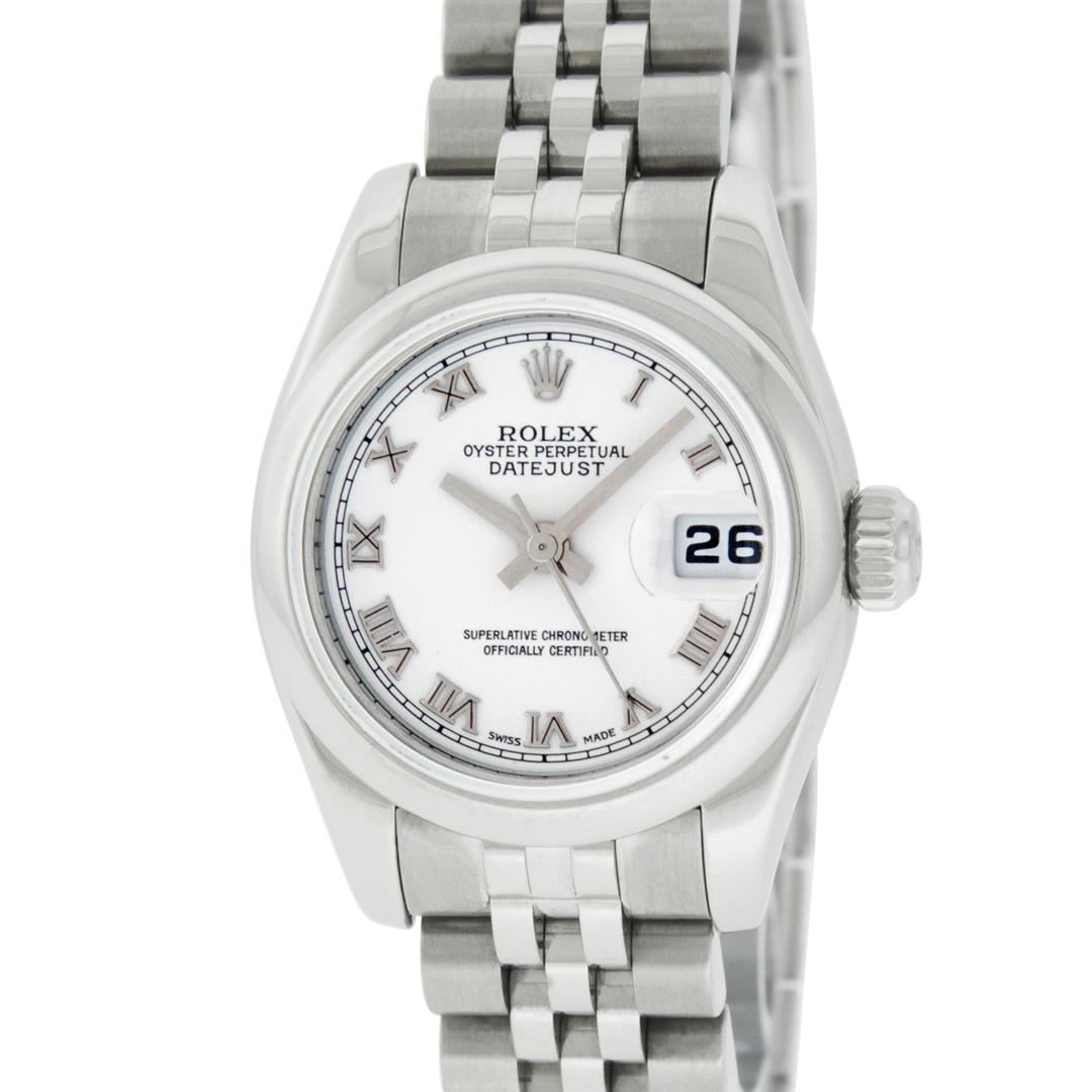 One Ladies Pre Owned Quickset Stainless Steel Rolex Datejust Polished Bright with Satin Finish, Serviced & Electronically Tested, Rolex Stainless Steel Case: 26mm, Rolex Stainless Steel Crown, Rolex Bezel: Stainless Steel Smooth Bezel. Rolex Crystal: Scra