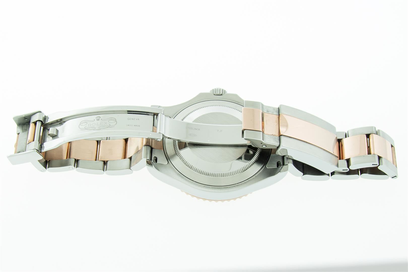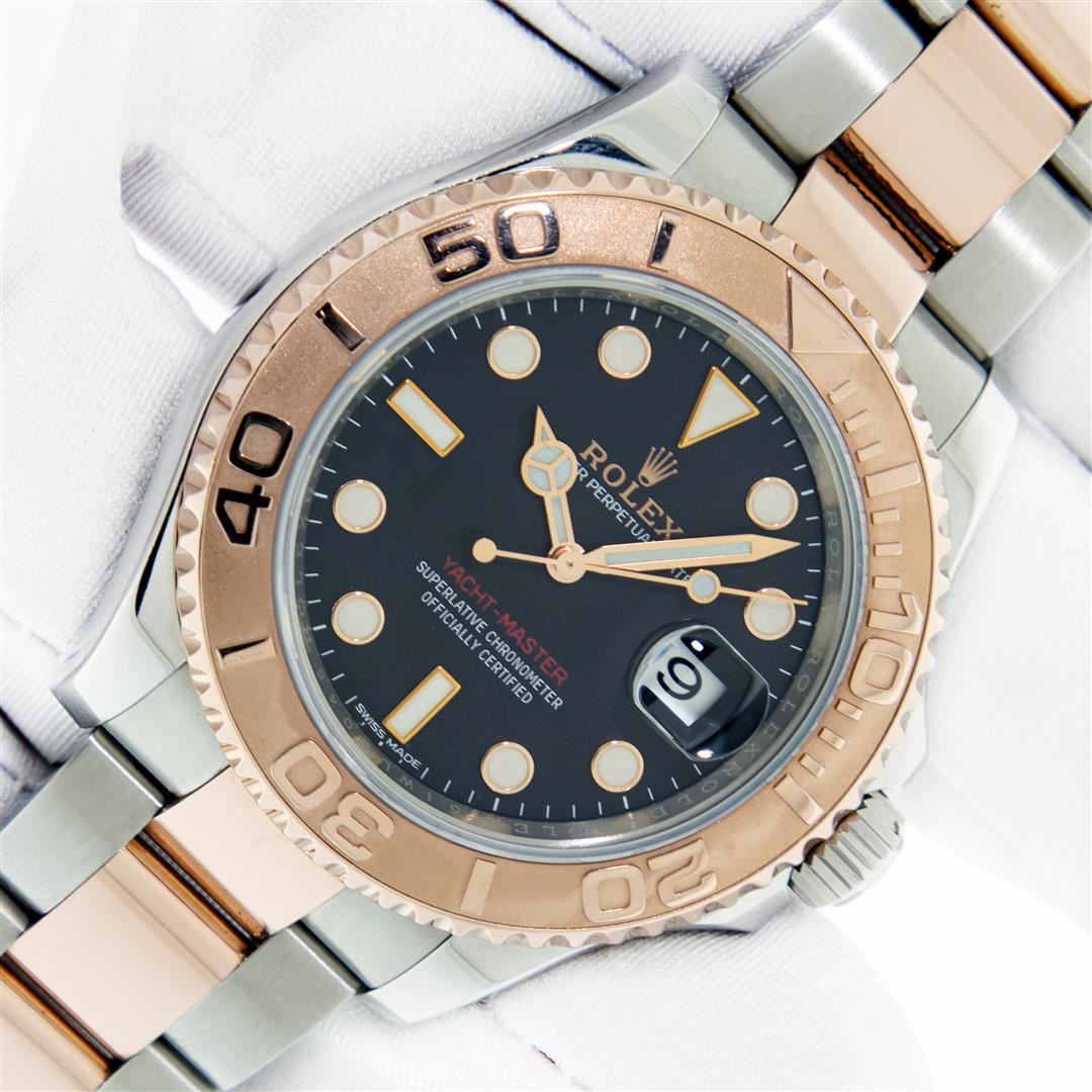 One Mens Pre Owned Rolex 18K Rose Gold And Stainless Steel Yacht-Master 40MM Polished And Serviced, This Watch Has Been Serviced & Electronically Tested, Rolex Stainless Steel And 18K Rose Gold Case: 40mm, Rolex 18K Rose Gold Crown with Rolex Logo, Rolex Bezel: 18K Rose Gold Rotatable Time-Lapse Bezel. Crystal: Sapphire With Magnified Date Window. Hands: Luminescent Hands. Rolex Movement: Automatic Winding Movement Caliber 3135. Rolex Dial: Black Dial With Luminous Hour Markers. Date Window: 3 O'Clock Position Date Display, Model: Yacht-Master 116621. Condition: Excellent. Rolex Bracelet: 18K Rose Gold And Stainless Steel Bracelet. Bright Polish & Satin Finish. 7.0 Inch Length, Adjustable. Flip Lock Clasp with Rolex Logo. This Watch Has Been Serviced Time Tested And Is In Excellent Condition It Is Free Of All Scratches And Dents. This Watch Comes With A Rolex Box And Booklets.