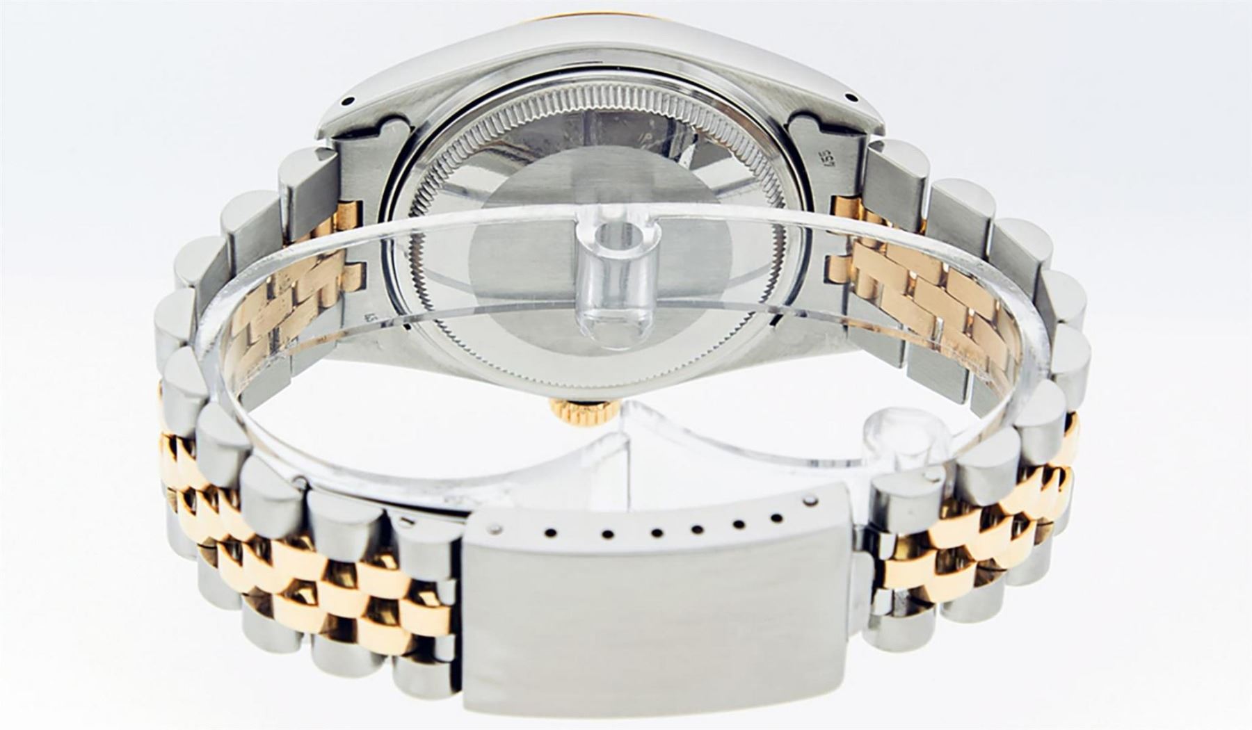 One Mens Yellow Gold Two Tone Rolex Datejust Polished, Serviced & Electronically Tested, Yellow Gold & Stainless Steel Case: 36mm, Yellow Gold Crown, Bezel: Yellow Gold Fluted Bezel. Custom Crystal: New Acrylic Cyclops Lens. Custom Hands: New Luminecent Hands. Movement: Automatic Winding Movement. Dial: Champagne Index Dial With Dash Track & Lumi Dots. Date Window: 3 O'Clock Position Date Display, Quickset, Model: Datejust. Condition: G-6 Extra Fine. Bracelet: Two Tone Yellow Gold & Stainless Steel Jubilee Band. Bright Polish. 7.0 Inch Length, Adjustable. Standard Clasp, With Rolex Logo. This Watch Has Been Serviced Time Tested And Is In Excellent Condition It Is Free Of All Scratches And Dents.