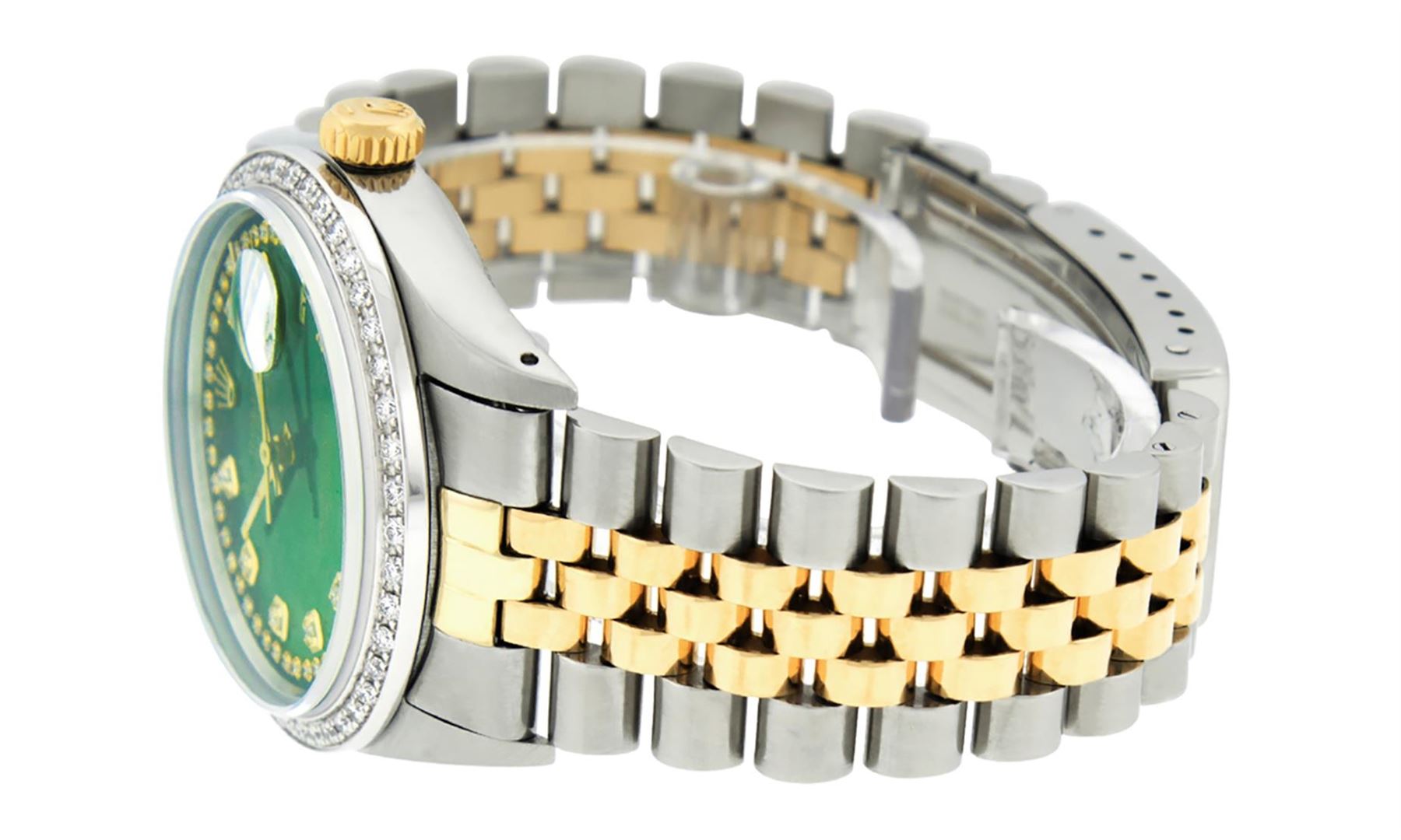 Rolex Mens 2 Tone Green Vignette String Diamond 36MM Datejust Wristwatch