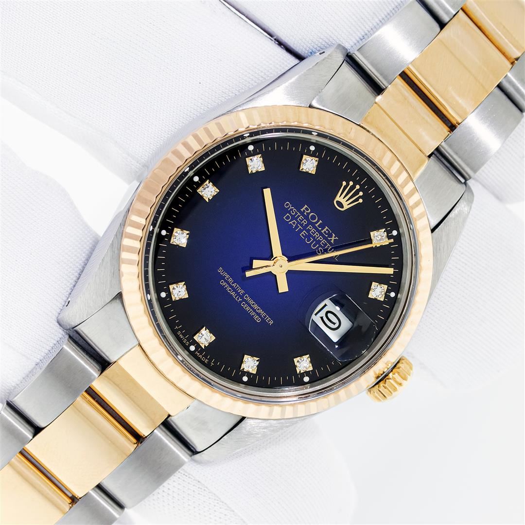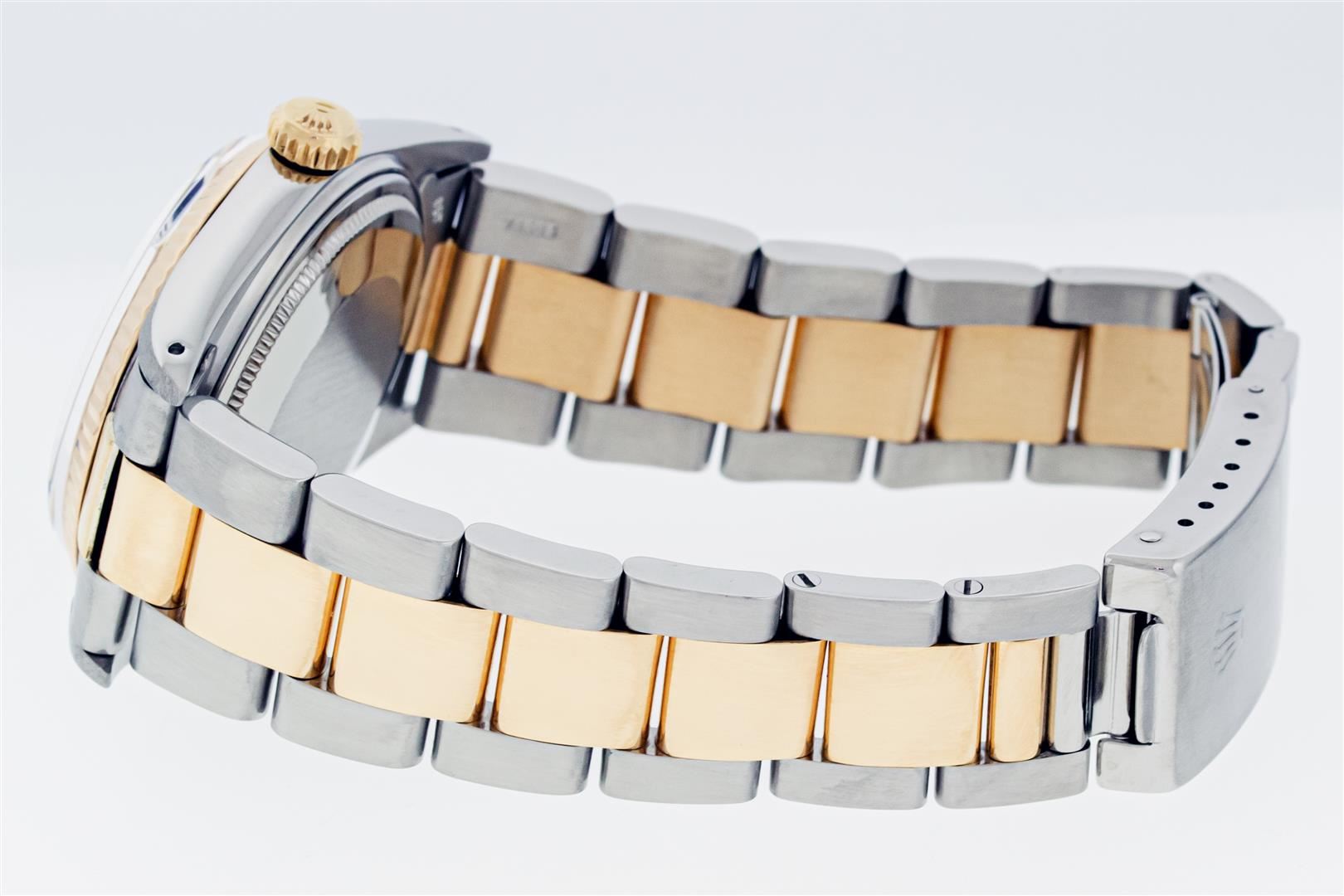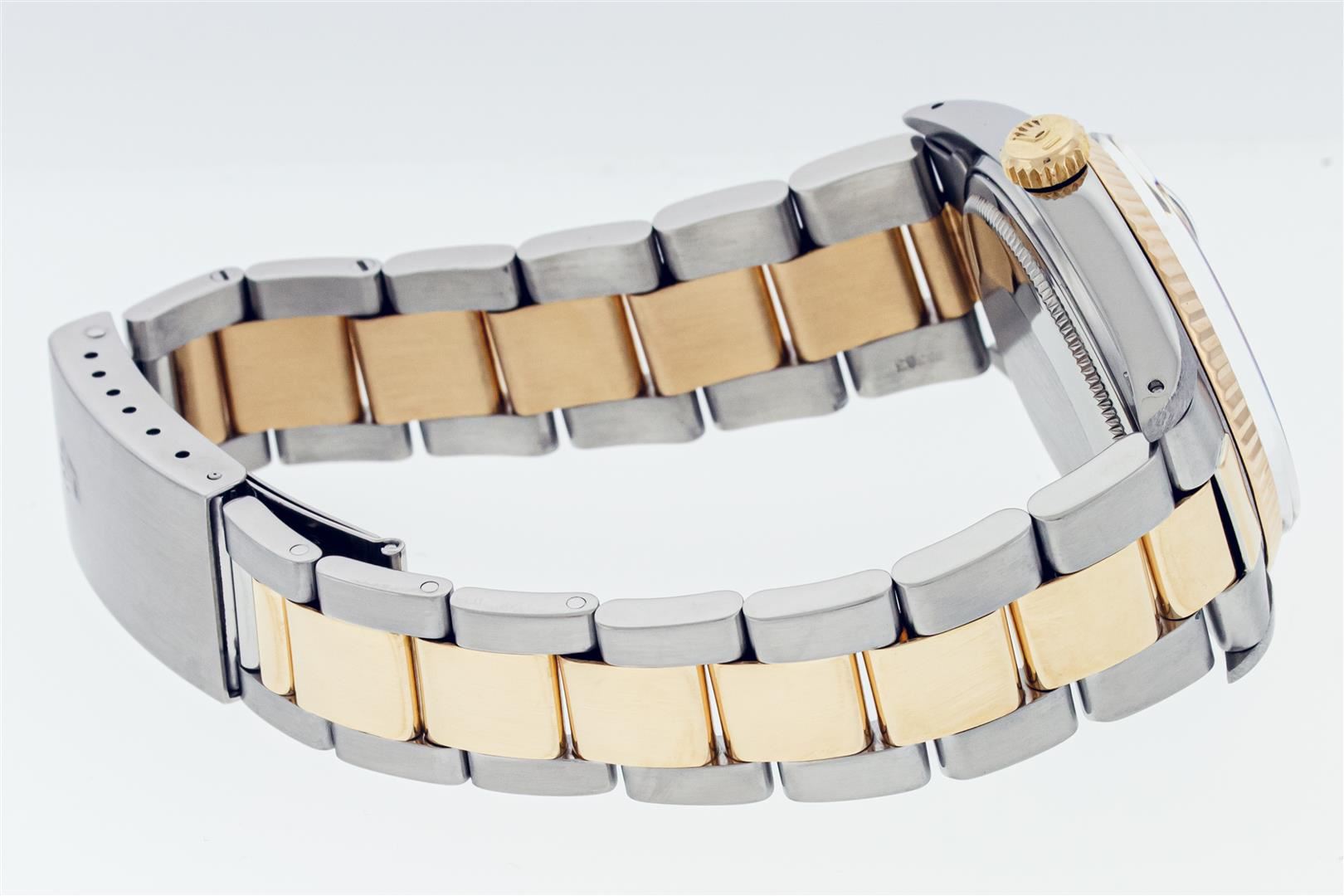 One Mens Pre Owned Yellow Gold And Stainless Steel Two Tone Rolex Datejust Polished, Serviced & Electronically Tested, Rolex Yellow Gold & Stainless Steel Case: 36mm, Rolex Yellow Gold Crown, Rolex Bezel: Yellow Gold Fluted Bezel. Custom Crystal: New Plas
